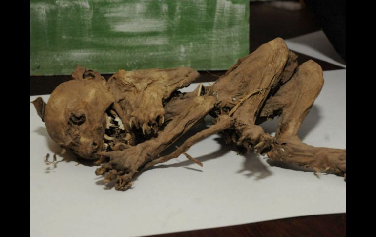 Entretenimiento | El esqueleto causa asombro y cierto terror entre los que acuden a verlo de cerca Exhiben en Argentina esqueleto de animal parecido al ''chupacabras'' El esqueleto causa asombro y cierto terror entre los que acuden a ver de cerca el animal Por: EFE 2 de septiembre de 2013 - 21:42 hs La piel intacta y disecada causó una gran impresión a la familia que lo encontró. EFE / BUENOS AIRES, ARGENTINA (02/SEP/2013).- Una familia argentina exhibe en su casa el esqueleto de un animal, con colmillos y garras, parecido al "chupacabras", el mítico ser del que la leyenda cuenta que ataca a otros animales en zonas rurales y ganaderas de Latinoamérica, informó hoy la agencia oficial Télam. Los restos del supuesto "chupacabras" causan asombro y cierto terror entre los vecinos del sur de la ciudad de Rosario, a unos 350 kilómetros de Buenos Aires, que acuden ver de cerca al animal. El esqueleto fue encontrado hace dos años y medio en un campo de la localidad de Vera, en el norte de la provincia de Santa Fe y, quienes lo han contemplado, aseguran que es similar al "chupacabras" de Puerto Rico, país en el que fue visto por primera vez. "Lo encontró mi hijo Ezequiel, que es transportista de hacienda. Estaba junto a un poste y cuando lo trajo la verdad que nos causó una fea impresión a todos con su piel disecada e intacta", relató a Télam Stella Maris Fernández, la dueña de la casa. El supuesto "chupacabras" de Rosario tiene orejas en forma de hoja, fosas nasales, garras con cinco dedos, cola, la boca abierta con su dentadura completa, largos colmillos y pequeñas nervaduras en la parte superior de la cabeza, que es ovalada. "Es lo más parecido a un ser extraterrestre que he visto en mi vida", aseguró Fernández quien apuntó la posibilidad de que el esqueleto sea estudiado por alguna institución científica, para determinar a qué tipo de animal pertenece. Temas Curiosidades y absurdos Animales Curiosidades Lee También Alcalde de Tulum anuncia acceso libre a playas, pero sin alimentos ni bebidas ¿Cuánto tarda una persona con depresión en llegar al tratamiento? Razones por las que beber agua mineral en exceso afecta tus huesos y dientes ¡Toma nota! 5 razones para lavar los trastes en casa con sal Recibe las últimas noticias en tu e-mail Todo lo que necesitas saber para comenzar tu día Registrarse implica aceptar los Términos y Condiciones