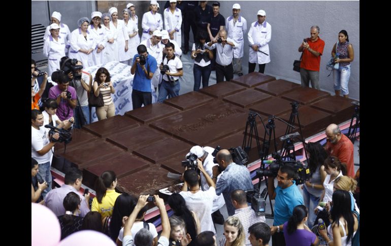 Entretenimiento | El dulce fue fabricado en cuatro días y pesa casi 4.5 toneladas Fabrican en Armenia la tableta de chocolate más grande del mundo Fue hecha de manera tradicional con semillas de cacao importadas de Ghana Por: EFE 11 de septiembre de 2010 - 16:01 hs Este desafío se ha convertido en el primer récord industrial en Armenia en entrar al Libro Guiness. AFP / EREVÁN, ARMENIA (11/SEP/2010).- El mayor fabricante de productos de confitería de Armenia, Grand Candy, ha elaborado la tableta de chocolate más grande del mundo, con un peso que llega casi a las 4.5 toneladas, y batió así la marca mundial, que quedó registrada hoy en el Libro Guiness de los Récords. La tableta, de cuatro mil 410 kilogramos, 5.6 metros de longitud, 2.75 metros de ancho y 25 centímetros de grosor, fue fabricada durante cuatro días con la misma tecnología que se utiliza para elaborar el chocolate negro, con semillas de cacao importadas de Ghana, informó el diario digital "PanArmenian.net". Para su producción se utilizaron 500 kilogramos de semillas de cacao y 300 kilogramos de polvo de azúcar. Según el dueño de Grand Candy, el diputado Karen Vartanián, si alguien -naturalmente un amante de los dulces- tratara de comerse sin ayuda de nadie la enorme tableta, tardaría unos 450 años. Con motivo del décimo aniversario de la empresa de confitería, el próximo 16 de octubre el ladrillo será expuesto en la céntrica plaza de la República de la capital armenia, Ereván, y podrá ser degustado por todo el que así lo desee. Hasta ese día, la tableta será conservada en condiciones especiales a una temperatura de entre 16 y 20 grados celsius. "Felicito a Armenia y a la compañía Grand Candy por este gran logro", declaró hoy Elizabeth Smith, representante legal del Libro Guiness de los Récords, al hacer entrega a la empresa del certificado que acredita esta nueva marca. Smith señaló que se trata del primer récord industrial en Armenia que entra en el Libro Guiness y agregó que ya pudo probar el chocolate que, dijo, le gustó mucho. La anterior marca fue registrada en Italia en 2007, con una tableta de 3.580 toneladas. Temas Curiosidades y absurdos Récords mundiales Récords Guinness Lee También ¿Cuánto tarda una persona con depresión en llegar al tratamiento? Razones por las que beber agua mineral en exceso afecta tus huesos y dientes ¡Toma nota! 5 razones para lavar los trastes en casa con sal 5 motivos por los que DEBES tener un vaso de agua junto a tu cama al dormir Recibe las últimas noticias en tu e-mail Todo lo que necesitas saber para comenzar tu día Registrarse implica aceptar los Términos y Condiciones