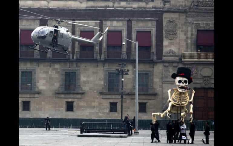 Entretenimiento | Extras y bailarines integraron las en la avenida 20 de noviembre Filman escenas de 'Spectre' con helicóptero en el Zócalo Más de mil extras y bailarines integraron las grabaciones en la avenida 20 de noviembre Por: SUN 27 de marzo de 2015 - 14:50 hs CIUDAD DE MÉXICO (27/MAR/2015).- Más de mil extras, bailarines y un helicóptero sobrevolando la avenida 20 de noviembre integraron la séptima jornada para “Spectre”, nuevo filme de James Bond. Desde las 08:00 horas comenzaron los ensayos, que han desembocado en el rodaje de una secuencia con procesión de Día de Muertos. "Vamos a darle la bienvenida a los muertos, ¡los muertos vivos están!", grita el animador de la fiesta, mientras la nave aérea pasa a unos 20 metros del piso. La plancha del Zócalo se encuentra cerrada al tránsito peatonal y vehicular. Vallas han sido colocadas para evitar el paso de curiosos. Miguel Alemán, ex gobernador de Veracruz y padre de Miguel Alemán Magnani, inversor del filme, visitó por unos minutos la locación Temas Cine Películas James Bond Recibe las últimas noticias en tu e-mail Todo lo que necesitas saber para comenzar tu día Registrarse implica aceptar los Términos y Condiciones