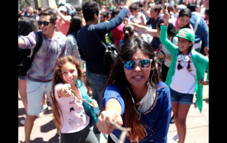 Al mediodía, decenas de jóvenes con playeras blancas y audífonos bostezan al unísono, de repente, corren tras personas vestidas de verde, después se paran en medio de Avenida Juárez, apuntan al cielo y gritan: ¡Es Superman!. Siguiente acto: el grupo saluda a los desconcertados individuos que los miran, y se toman fotografías con ellos. Tras correr, bailar y esconderse, sacan una varita y la agitan pronunciando en voz alta las palabras: ¡Expecto Patronum!. Luego, sacan una sábana blanca y simulan ser fantasmas que asustan a quienes pasan por el lugar. Lo siguiente que hacen es dirigirse a la explanada de la Rectoría de la Universidad de Guadalajara (UdeG), en donde cruzan la calle hasta llegar a la Rambla Cataluña. En ese momento, suenan canciones de Sussie 4 y unas mujeres vestidas de rojo hacen una coreografía; en seguida el grupo de blanco se suma al baile, que finaliza minutos después con un aplauso. Todo esto en menos de 20 minutos.Quienes vieron las acciones de lejos, lucieron confusos ante el actuar de este peculiar grupo; incluso algunos no supieron cómo reaccionar a los saludos afectuosos de desconocidos, por ejemplo María López, quien quedó extrañada cuando los jóvenes apuntaron al cielo gritando que veían a Superman, "uno de ellos me chocó la mano después de eso". Franco, uno de los participantes, aseveró que se divirtió mucho, y que disfrutó siguiendo de las indicaciones, "la música que pusieron de las películas también estuvo fabulosa".Para formar parte de este evento se necesitaba bajar, previamente, dos archivos que se subieron en la página del festival. En uno de ellos se explicaban paso a paso las acciones a seguir; cada indicación tenía algo que ver con películas como Superman, Mi Villano Favorito, Misión Imposible, Pulp Fiction, Harry Potter, Rocky, entre otras. "Baila como Uma Thurman y John Travolta en Pulp Fiction", o "Enfrenta a los dementores con tu varita", actividad relacionada con el filme del mago con anteojos. El otro archivo fue un video en el cual enseñaban los movimientos que tenían que hacerse en la coreografía masiva. Mario Carrión, del comité organizador del FICG, indicó que al final fueron alrededor de 120 personas las que participaron en la actividad. El datoFlashmob (o Flash Mob) es un término que traducido al español sería algo como "multitud instantánea" (flash - destello, ráfaga, mob - multitud). Lo que quiere decir que se entiende como una multitud de gente que se reúne en un momento determinado, de la nada, a realizar algún tipo de acción (generalmente corta) y luego se separan y vuelven a hacer lo que estaban haciendo como si nada hubiera ocurrido.EL INFORMADOR/ ILSE MARTÍNEZ