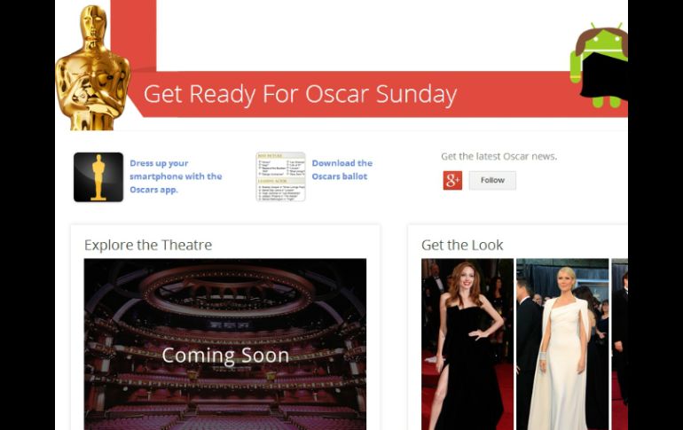 Entretenimiento | ''Knowledge Graph'' es una herramienta que proporciona información sobre nominados Google presenta página sobre los premios Oscar Los cinéfilos podrán conocer todos los detalles de las películas nominadas, el domingo por la noche se conocerá a los ganadores Por: NTX 20 de febrero de 2013 - 18:04 hs El sitio www.google.comoscars, incluye la lista completa de películas nominadas. ESPECIAL / CIUDAD DE MÉXICO (20/FEB/2013).- Ante la próxima transmisión de la ceremonia de entrega de los premios Oscar a lo más destacado de la cinematografía, la empresa Google presentó el sitio www.google.com/oscars, donde los cinéfilos podrán conocer todos los detalles de las películas nominada. Esta página, explica en un comunicado, contiene diversas herramientas para facilitar la búsqueda de información de las distintas películas. De tal forma, refirió, con la herramienta "Knowledge Graph", al buscar una película a través de su sitio de Internet se desplegará automáticamente la información relacionada, como el director o actores de la cinta, entre otros. Asimismo mediante la herramienta Google Earth se pueden visitar las locaciones en Nueva Orleans de la película más buscada en Google, "Django", del director Quentin Tarantino, o de la segunda película con más búsquedas, "Los miserables". En cuanto a reparto se refiere, Google indica que Hugh Jackman es el actor con más búsquedas registradas en su portal; mientras que entre los directores nominados más buscados el último mes se encuentra Steven Spielberg y Ang Lee. El sitio www.google.com/oscars, incluye la lista completa de películas nominadas, las locaciones que se pueden visitar con Google Earth y el pronóstico de los ganadores que hace Google según las búsquedas. Temas Cine Google Premios Oscar Recibe las últimas noticias en tu e-mail Todo lo que necesitas saber para comenzar tu día Registrarse implica aceptar los Términos y Condiciones
