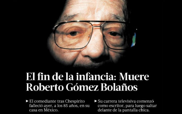 Entretenimiento | Tras la muerte de Roberto Gómez Bolaños a los 85 años de edad 'Hasta siempre Chavo'; medios chilenos despiden a 'Chespirito' La muerte del comediante es nota principal en los diarios del país sudamericano Por: NTX 29 de noviembre de 2014 - 08:41 hs SANTIAGO, CHILE (29/NOV/2014).- "Hasta siempre Chavo" fue la despedida que destacaron los principales titulares de medios escritos chilenos, al rendir homenaje al comediante mexicano Roberto Gómez Bolaños, el popular Chespirito, en su partida a los 85 años de edad. "Adiós al Chavo: a los 85 años muere Roberto Gómez Bolaños", tituló en portada el diario La Tercera, acompañando la información con una fotografía del más popular personaje que encarnó ''Chespirito'', que por décadas hizo las delicias de niños y adultos en toda Latinoamérica. En sus páginas interiores, el rotativo se despidió del comediante mexicano con un sentido "Hasta siempre, Chavo" y una caricatura del personaje a página completa, consignando el deceso la víspera de una de las figuras más queridas de la televisión. "Ayer, a los 85 años, murió el comediante mexicano Roberto Gómez Bolaños. Lo sobrevivirán sus personajes en nuestra memoria: El Chavo del 8, el Chapulín Colorado, el Doctor Chapatín y el resto de la pandilla", indicó. Categórico, el matutino proclamó además "El fin de la infancia: muere Roberto Gómez Bolaños", consignando que el boxeador, arquitecto, publicista, actor y dramaturgo fue quizás el único artista que pudo presumir haber sido comparado con Shakespeare. "El artista marcó a generaciones, dejando un enorme vacío tras su muerte este 28 de noviembre", acotó La Tercera, destacando sin embargo que "su legado está vivo en la actualidad", pues en Chile sus programas aún se transmiten por la televisión local. El diario El Mercurio, por su parte, tituló en portada: "Roberto Gómez Bolaños (1929-2014). Murió el más importante comediante de la TV latina, creador de personajes como 'El Chapulín Colorado' y 'El Chavo del 8'". "Adiós a Chespirito, un comediante simplemente inolvidable", abundó el periódico en páginas interiores, lamentando que "la inagotable inventiva de 'Chespirito' terminó por extinguirse ayer". "Los programas protagonizados por ese personaje, y en los que trabajó siempre con un elenco que se transformaría en clásico, se emitieron en Chile prácticamente desde un inicio y hasta este siglo, de forma ininterrumpida", subrayó. Sostuvo que "eso explica el inmenso arraigo que aquí logró, y que tuvo su primer estallido en 1977, cuando el mexicano y sus compañeros visitaron el país, para ofrecer dos presentaciones en el Estadio Nacional y una en la Quinta Vergara", Viña del Mar. "Ha muerto Roberto Gómez Bolaños, pero el Chavo y el Chapulín no. Ellos seguirán vivos y continuarán en el living de nuestra casa, haciendo reír a nuevas generaciones e integrando a nuevas familias", concluyó El Mercurio. Temas Farándula Decesos actores Decesos personalidades del arte Chile Roberto Gómez Bolaños Chespirito Lee También México vs Argentina: ¿Quién ganará el partido según la IA? Dónde ver EN VIVO el México vs Argentina por el Mundial Sub-20 México busca frenar el paso perfecto de Argentina en Mundial Sub-20 Fallece John Lodge, bajista de The Moody Blues Recibe las últimas noticias en tu e-mail Todo lo que necesitas saber para comenzar tu día Registrarse implica aceptar los Términos y Condiciones