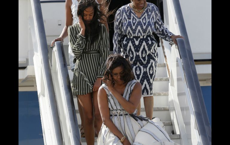 Entretenimiento | El viento estuvo a punto de jugarle una mala pasada a Malia Obama Hija de Obama casi muestra de más en Madrid Acompaña junto a su hermana y abuela a su madre, Michelle, en una gira de trabajo Por: EL INFORMADOR 30 de junio de 2016 - 11:16 hs GUADALAJARA, JALISCO (30/JUN/2016).- Malia Obama, hija mayor del presidente de los Estados Unidos, pasó por un momento tenso cuando el viento amenazó con levantar su falda luego de bajar del avión en el aeropuerto de Torrejón de Ardoz, en Madrid, España. Como parte de una comitiva conformada por su madre Michelle, su hermana Sasha y su abuela Marian Robinson, la joven arribó a España este miércoles 29 de julio y, al abandonar la aeronave, el fuerte viento casi provocó que su vestido jugara en su contra al ceder a la corriente; sin embargo, alcanzó a detener la prenda para no mostrar de más ante una concurrida audiencia. La primera dama también padeció de la condición climática, pero al vestir una prenda mucho más larga, pudo controlar la situación de mejor manera. Malia, por el contrario, durante todo el descenso de la escalinata tuvo que mantener la atención en la sujeción de su prenda incluso cuando, una vez en tierra, saludo a los funcionarios que las recibían, no dejó de sujetar su vestido. Michelle Obama se encuentra en España para tener un encuentro con la reina Letizia y promocionar su iniciativa ''Let girls learn'' (Dejen que las niñas aprendan), lanzada en el año 2015 para ayudar a millones de niñas y adolescentes de todo el mundo a tener acceso a la educación. EL INFORMADOR / ÓSCAR ÁLVAREZ Temas Farándula España Letizia Ortiz Michelle Obama Escándalos de la farándula Lee También Ulises Dávila se declara culpable por amaño de partidos Belinda denuncia a Lupillo Rivera "Streamer" transmite su parto en vivo y causa revuelo en redes sociales Sociales: André e Isabella reciben la Primera Comunión en familia Recibe las últimas noticias en tu e-mail Todo lo que necesitas saber para comenzar tu día Registrarse implica aceptar los Términos y Condiciones