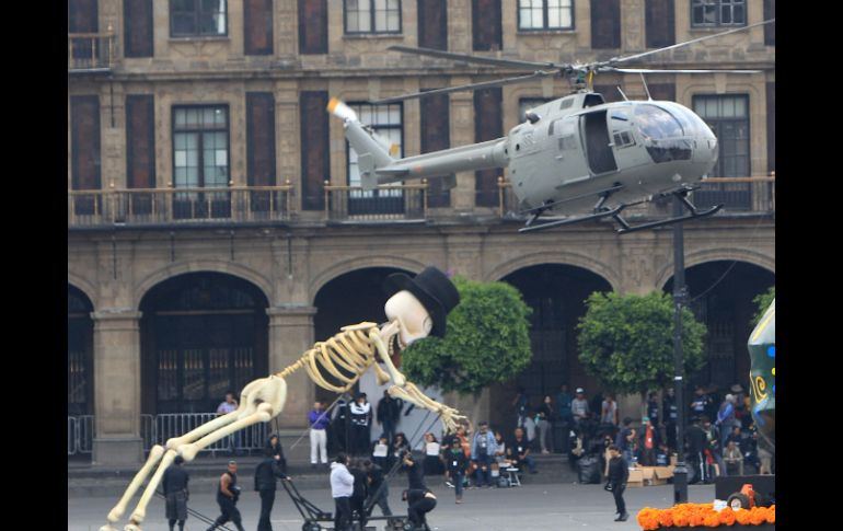 Entretenimiento | Esta es la octava jornada de rodaje del agente 007 para la nueva cinta, 'Spectre' James Bond se sube a un helicóptero en el Zócalo Esta es la octava jornada de rodaje del agente 007 para la nueva cinta, 'Spectre' Por: SUN 28 de marzo de 2015 - 10:19 hs CIUDAD DE MÉXICO (28/MAR/2015).- James Bond continúa con presencia en el Zócalo capitalino y este sábado se encuentra rodando una secuencia en la que se sube a un helicóptero ubicado en la plancha de la plaza. Daniel Craig arribó al sitio poco antes de las 9 de la mañana y de inmediato se metió entre 200 extras personificados de Día de Muertos, que rodean la aeronave. Esta es la octava jornada de rodaje del 007 para Spectre, su nueva cinta, en locaciones del DF. La escena se enmarca a unos cuantos pasos del escenario principal de una celebración por los llamados Fieles Difuntos, donde hay bailarines moviéndose al son de música con tambores. El Zócalo se encuentra cerrado al tránsito vehicular y peatonal. Temas Cine Películas James Bond Ciudad de México Producción de películas Lee También México vs Corea del Sur: EN VIVO, dónde ver el partido por el Mundial Sub-17 femenil Esta es la Mejor Película en el Festival de Cine de Morelia Desfile de Alebrijes Monumentales, ruta y hora del evento HOY en CDMX Así es como el minimalismo ha impactado en la cultura mexicana Recibe las últimas noticias en tu e-mail Todo lo que necesitas saber para comenzar tu día Registrarse implica aceptar los Términos y Condiciones