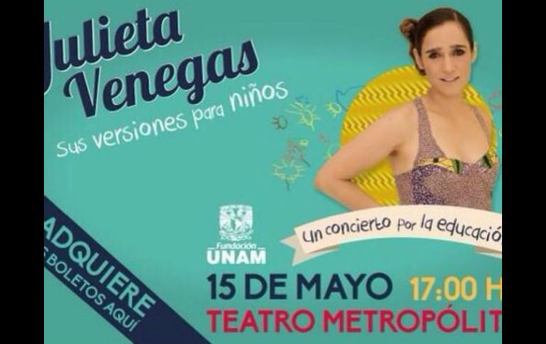 Entretenimiento | La cantante ofrecerá un concierto cuyos fondos serán donados Julieta Venegas cantará por la educación de los niños La cantante ofrecerá un concierto cuyos fondos serán donados a la Fundación UNAM Por: NTX 28 de febrero de 2014 - 13:20 hs 'Vamos a montar un 'show' para niños (..) y estoy contenta, quiero hacer algo especial', declara la intérprete. Foto: @julietav. ESPECIAL / CIUDAD DE MÉXICO (28/FEB/2014).- La cantautora mexicana Julieta Venegas informó que el 15 de mayo próximo ofrecerá un concierto para niños en el Teatro Metropólitan de esta ciudad. "Vamos a montar un 'show' para niños y es la primera vez que lo hago. Estoy contenta, quiero hacer algo especial", declaró la intérprete de "Andar conmigo". La presentación se realizará a las 17:00 horas en apoyo a la Fundación UNAM, de la cual es embajadora, y bajo el programa "SuSede en el Centro" por la educación. Todo lo recaudado en taquilla será donado. "Empezó como una cosa que yo quería hacer en la calle con instrumentos más chicos, música distinta y de repente surgió la asociación con la UNAM", añadió. Otros artistas que han participado en favor de SuSede en el Centro son Susana Zabaleta, Bruno Bichir, Filippa Giordano y el diseñador de moda Macario Jiménez. La noche del jueves, Julieta Venegas asistió a la celebración por las 100 representaciones de la obra "El curioso incidente del perro a medianoche", cuya música fue creada por ella. Ante la prensa, rechazó hablar sobre la situación legal que enfrenta con el músico argentino Rodrigo García Prieto por la custodia de Simona, hija de ambos y la supuesta terapia psicológica que está obligada a tomar por órdenes de un juez. Temas Farándula UNAM Conciertos Julieta Venegas Lee También Tania Libertad celebra 45 años de canto, amor y libertad en México Vinculan a proceso al joven acusado de homicidio en el CCH Sur Ticketmaster tiene todos estos conciertos al 2x1 en Ciudad de México Alfredo Olivas en La México: ¿cuánto tiempo es la fila de espera para comprar boletos? Recibe las últimas noticias en tu e-mail Todo lo que necesitas saber para comenzar tu día Registrarse implica aceptar los Términos y Condiciones