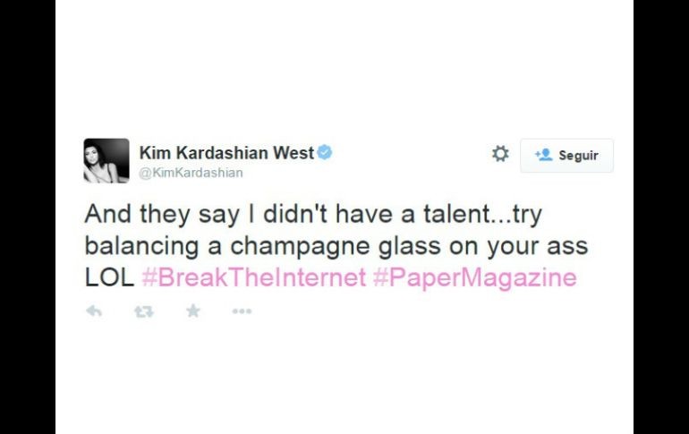 Entretenimiento | La socialité responde, a través de su Twitter, a las críticas sobre su falta de talento Kim Kardashian responde a polémica por fotos 'Dicen que no tengo talento... ¡Traten de balancear una copa de champán en su trasero!', publica en Twitter Por: SUN 13 de noviembre de 2014 - 09:11 hs El tuit de la celebridad obtuvo más de 22 mil retuits y más de 25 mil personas lo marcaron como favorito, en sólo 15 horas. TWITTER / @kimkardashian CIUDAD DE MÉXICO (13/NOV/2014).- Kim Kardashian publicó un mensaje en su cuenta de Twitter luego de la polémica que desataron las fotografías de la revista Paper, en donde muestra su anatomía. “Dicen que no tengo talento... ¡Traten de balancear una copa de champán en su trasero!”. El tuit que compartió la socialité obtuvo más de 22 mil retuits y más de 25 mil personas lo marcaron como favorito en tan sólo 15 horas del martes pasado. Cabe señalar que fue Kanye West, esposo de Kardashian, quien difundió algunas de las fotografías en su cuenta de Facebook e Instagram. Lo ha hecho la revista Paper, anunciando su intención tal cual, a bombo y platillo desde la portada, con el titular sobre las fotos que resaltan la anatomía de Kardashian, dueña del trasero más famoso en internet. Merece la pena analizar punto por punto la anatomía de este caso viral y El País de España, lo hizo en un trabajo con números. El diario español reconoció en sus primeras líneas de su reportaje de que si googleas el nombre de Kim Kardashian desde Google.es, aparecen 167 millones de resultados, así que por algo es famosa. ¿Por qué? Resumiendo: tuvo su propio reality, protagonizó un video porno “filtrado” junto a su novio de aquella época, Ha conseguido hacer de su persona una marca y está casada (en el que es su tercer matrimonio) con el rapero Kanye West. Que sean una pareja tan famosa ayuda a viralizar. Ella ya ha compartido las dos fotos de la revista directamente con sus más de 21 millones de seguidores en Instagram (utilizando en una de ellas el hashtag #breaktheinternet) y a sus más de 25 millones en Twitter, haciendo incluso una broma: “Y decían que no tenía talento... Intenta sostener una copa de champán sobre tu culo. LOL”. Que la famosa más viral saque partido a su parte más viral (su trasero). Como explica Time, es “la última aparición” hasta ahora de la cola de Kim Kardashian “tras debutar en un video XXX, dejarse entrever ocasionalmente en Instagram y una muestra resumida en GQ”. Y sí, siempre da de qué hablar. Este artículo del New York Times también habla de Jen Selter, cuya cuenta de Instagram tiene actualmente más de 4.8 millones de seguidores, y de Niki Minaj, cuyo video Anaconda suma más de 293 millones de visitas en la web. Es decir, Kardashian no está sola: Minaj, Iggy Azalea y, antes que ellas, Jennifer López, han cambiado las preferencias del público en lo que respecta a esta parte del cuerpo, que ahora se aspira a que sea, en fin, prominente. Hasta el punto de que Vogue anunciaba, quizás con un exceso de solemnidad, que estamos “oficialmente en la era del trasero grande”. Según la revista, a partir del tema “Bootylicious”, de Destiny’s Child, comenzó esta tendencia al alza que ha llegado a su auge, con ejemplos como los ya expuestos e incluso con estrellas menos voluptuosas, como Miley Cirus, cediendo a los temblores del twerking. Eso sí, este artículo fue criticado por obviar “la relación entre la opinión popular, los traseros y el cuerpo de las mujeres negras”. Temas Farándula Desnudos de Famosas Kim Kardashian Escándalos de la farándula Escándalos en redes sociales Lee También Bad Bunny permanece sentado durante "God Bless America" y enciende las redes Alcalde de Tulum anuncia acceso libre a playas, pero sin alimentos ni bebidas Ulises Dávila se declara culpable por amaño de partidos Belinda denuncia a Lupillo Rivera Recibe las últimas noticias en tu e-mail Todo lo que necesitas saber para comenzar tu día Registrarse implica aceptar los Términos y Condiciones