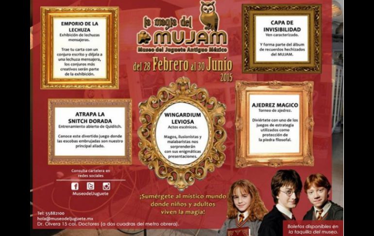 Entretenimiento | Los seguidores de la saga podrán apreciar la coleccion más grande del mundo La magia de Harry Potter visitará el Museo del Juguete Los seguidores de la saga podrán apreciar la coleccion más grande del mundo Por: SUN 24 de febrero de 2015 - 18:58 hs MUJAM indicó a través de su sitio en Facebook las piezas que formarán parte de la exposición. FACEBOOK / Museo del juguete CIUDAD DE MÉXICO (24/FEB/2015).- Trucos, ilusionismo, hechizos, pócimas, embrujos y conjuros es lo que promete experimentar el Museo del Juguete Antiguo México ( MUJAM) a los seguidores de Harry Potter, que podrán apreciar en este recinto la colección más grande del mundo sobre la saga creada por la escritora británica J.K. Rowling. El acervo, indicó el MUJAM a través de su sitio en Facebook, fue recolectado por manos mexicanas. “Asher Potter, acreedor del Record Mundial Guiness, comparte su colección con todos los brujos aprendices, seres feéricos y muggles", informó el recinto. Varitas mágicas, escobas, mandrágoras, dementores y dragones convivirán en un mismo espacio, apunta el recinto en un boletín. El "Emporio de la Lechuza" (donde los visitantes podrán enviar cartas con conjuros a través de estas) o un entrenamiento abierto de Quiditch, son algunas de las actividades alternas planeadas por este espacio para disfrutar al máximo la exhibición "La magia del MUJAM". La exposición se inaugurará el próximo 28 de febrero y finalizará el 30 de junio de 2015. El MUJAM está ubicado en Dr. Olvera no. 15, Colonia Doctores, México, Distrito Federal. Temas Cine Exposiciones Harry Potter Lee También ¿Quién es quién en el spin-off de "El señor de los cielos"? Andando el camino a la distopía “Un mundo mejor”: el poder de la sanación emocional Cinemex se luce este jueves 9 de octubre con dos estrenos Recibe las últimas noticias en tu e-mail Todo lo que necesitas saber para comenzar tu día Registrarse implica aceptar los Términos y Condiciones