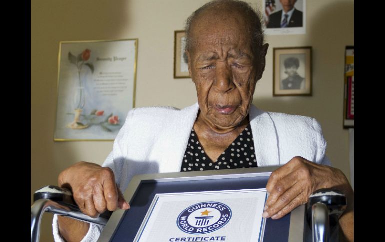 Entretenimiento | La vida de la neoyorquina Susannah Mushatt Jones abarca tres siglos La persona más vieja del mundo celebra sus 116 años La vida de la neoyorquina Susannah Mushatt Jones abarca tres siglos Por: AFP 6 de julio de 2015 - 10:52 hs NUEVA YORK, ESTADOS UNIDOS (06/JUL/2015).- Era una adolescente cuando estalló la Primera Guerra Mundial y su vida abarca tres siglos: la persona más vieja del mundo, la neoyorquina Susannah Mushatt Jones, celebró el lunes 116 años. El libro de los récords Guinness anunció el cumpleaños y publicó fotos de Jones, ataviada elegantemente con una chaqueta blanca, un vestido negro de lunares blancos y sombrero al tono, y recibiendo el certificado que la reconoce como la persona más vieja del mundo. Jones, conocida como "T" por sus 100 sobrinos y sobrinas, nació el 6 de julio de 1899 y se convirtió en la persona viva más vieja del mundo el pasado 17 de junio a los 115 años y 346 días, dijo Guinness. La mujer celebra su cumpleaños con dos fiestas, una con su familia el lunes y otra más grande el martes en su casa en Brooklyn (sudeste de Nueva York) con amigos, vecinos y autoridades. La mujer afroestadounidense nació en Alabama (sur de Estados Unidos), hija de un recolector de algodón a cargo de su mujer y diez hijos. Fue aceptada para realizar estudios universitarios, pero sus padres no pudieron pagar los gastos. En 1922 se mudó a Nueva Jersey y un año más tarde a la vecina Nueva York para trabajar como ama de llaves y niñera. "¡Dormir!", respondió a Guinness World Records cuando se le preguntó por el secreto de su longevidad. Jones quedó ciega y tiene dificultades para oír, pero solo toma "dos medicamentos por día" y no está recluida en cama, según el sitio internet de Guinness. El récord de la persona más vieja del mundo lo tiene la francesa Jeanne Calment, que murió en 1997 a la edad de 122 años y 164 días. Temas Estados Unidos Récords Guinness Curiosidades Lee También "Streamer" transmite su parto en vivo y causa revuelo en redes sociales ALERTA en Jalisco por formación de ciclón "Raymond" Esta es la última guerra que Trump resolvió, según él mismo Las guerras que Trump dice haber resuelto y por las que merece el Nobel Recibe las últimas noticias en tu e-mail Todo lo que necesitas saber para comenzar tu día Registrarse implica aceptar los Términos y Condiciones