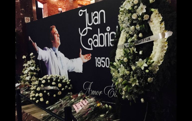 CIUDAD DE MÉXICO (06/SEP/2016).- El largo desfile de gente que acude a darle el último adiós a su ídolo Juan Gabriel continúa y lo primero que los fans ven al entrar al Palacio de Bellas Artes son las coronas y arreglos florales que el gremio artístico ha comenzado a mandar desde la tarde de ayer. Las coronas enormes que sobresalen son las que enviaron los Fernández, una de parte de Vicente Fernández y familia, y otra de parte de Alejandro Fernández. También la familia Rivera, los padres de Jenni y Lupillo, se hicieron presentes con un arreglo de flores multicolores. En uno los rincones del acceso aparece otra corona de parte de Luis Miguel, un poco más pequeña que la que se encuentra en el vestíbulo central, atrás de la urna del cantautor michoacano. Gente como Pablo Montero, Mariana Soeane, Pepe Aguilar, Álvaro Dávila, Miguel Alemán y miembros de la Asociación Nacional de Actores (ANDA) también se hicieron presentes con sus respectivos arreglos florales. La española Isabel Pantoja envió dos coronas, una que decía: "Con todo cariño para mi compadre Juan Gabriel" y otra enorme sólo con su nombre. Cabe mencionar que en el piso donde están estos arreglos y flores, los fans que llegan con rosas comenzaron a depositarlas ahí. Se calcula que hasta al momento hay más de mil rosas y se espera que le dejen muchas más.El Mariachi Gama 1000 inició con el homenaje de este día En punto de las 10:30 horas de este martes, el reconocido grupo musical que en muchas ocasiones acompañó a "El Divo de Juárez" en sus presentaciones se postró al lado de las dos escaleras que están en el vestíbulo y al son de "La muerte del palomo" y "Abrázame muy fuerte" comenzó la serenata en honor al prolífico compositor y cantante michoacano. Siguió con "Se me olvidó otra vez", "Si quieres", "La diferencia", "Amor eterno" y "Te sigo amando". En las sillas destinadas a los invitados especiales se encontraba Mane de Gomar, amigo y asistente del cantante; se espera que a mediodía lleguen más personalidades, amigos y los familiares del intérprete de "Querida". Más tarde se prevé la actuación de la Sonora Santanera, Pepe Aguilar y Cristian Castro. Mientras tanto, el desfile de personas continúa y concluirá aproximadamente a las 19:00 horas.