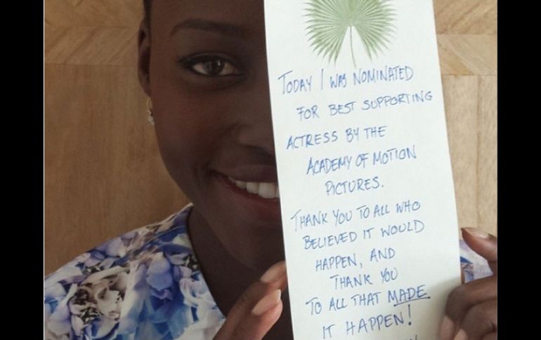 Entretenimiento | Es postulada a Mejor Actriz de Reparto por su trabajo en '12 years a slave' Lupita Nyong'o considera 'extraordinaria' su nominación al Oscar Es postulada a Mejor Actriz de Reparto por su trabajo en '12 years a slave' Por: EL INFORMADOR 16 de enero de 2014 - 17:22 hs La actriz nació en México, creció en Kenia y se educó en Estados Unidos. Tomada de Instagram @lupitanyongo. ESPECIAL / LOS ÁNGELES, ESTADOS UNIDOS (16/ENE/2014).- La mexicana Lupita Nyong'o calificó como "simplemente extraordinaria" su nominación al Oscar en la categoría de Mejor Actriz de Reparto. Por su trabajo en "12 years a slave", Nyong'o fue postulada por la Academia de Ciencias y Artes Cinematográficas (AMPAS, por sus siglas en inglés). "Estoy impresionada y no tengo palabras de que la Academia haya reconocido mi trabajo en esta película en donde fui dirigida por Steve McQueen y estoy profundamente orgullosa de estar junto con mis demás compañeros nominados", señaló. La cinta recibió nueve postulaciones, solo una menos que "Gravity" y "American hustle", que cuentan con 10, para ser los máximos nominados a la 86 entrega de los Oscar, que se realizará el próximo 2 de marzo. "Esta celebración es simplemente extraordinaria y estoy agradecida de poderla compartir con el resto de la familia de '12 years a slave'. Me siento verdaderamente bendecida!", agregó en declaraciones por escrito divulgadas por la prensa. En tanto, la actriz publicó en su cuenta de Instagram una imagen en donde agradece a ‘’aquellos que creyeron que podría ocurrir –la nominación- y a quienes lo hicieron posible’’. La fotografía es acompañada con un texto que dice: ‘La gratitud es una de las emociones menos expresadas, especialmente cuando es profunda’’, la foto tiene más de ocho mil likes y además ha sido felicitada por sus seguidores en las redes sociales. Lupita Nyong'o nació en México, creció en Kenia y se educó en Estados Unidos, en donde se graduó en el programa de Actuación de la Escuela de Drama en la Universidad de Yale. Nyong'o debutó en el cine con la película nominada al Oscar "12 years a slave", con el personaje de "Patsey". Con información de NTX Temas Cine Películas Premios Oscar Recibe las últimas noticias en tu e-mail Todo lo que necesitas saber para comenzar tu día Registrarse implica aceptar los Términos y Condiciones