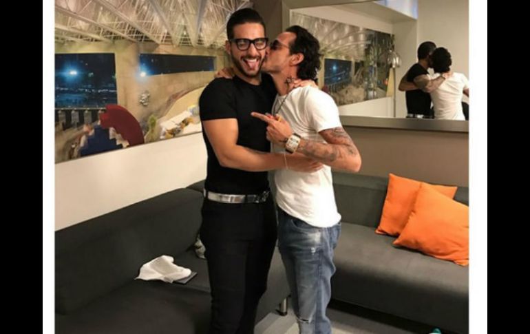 CIUDAD DE MÉXICO (11/MAY/2017).- El cantante estadounidense Marc Anthony presumió en su cuenta de Instagram una fotografía besando a Maluma.Los dos intérpretes coincidieron en la Ciudad de México y Anthony compartió en la red social una imagen del encuentro."Anoche con mi amigo #Maluma en el backstage antes de la presentación en la Ciudad de #México. #Gira2017”, escribió el salsero neoyorquino.Lo que más destacó en la imagen fue el beso en la mejilla que Anthony le dio al cantante colombiano.Maluma se mostró sonriente y sacó la lengua al momento del beso.A mediados de abril, durante un concierto, la cantante Jennifer Lopez rechazó un beso de Anthony.