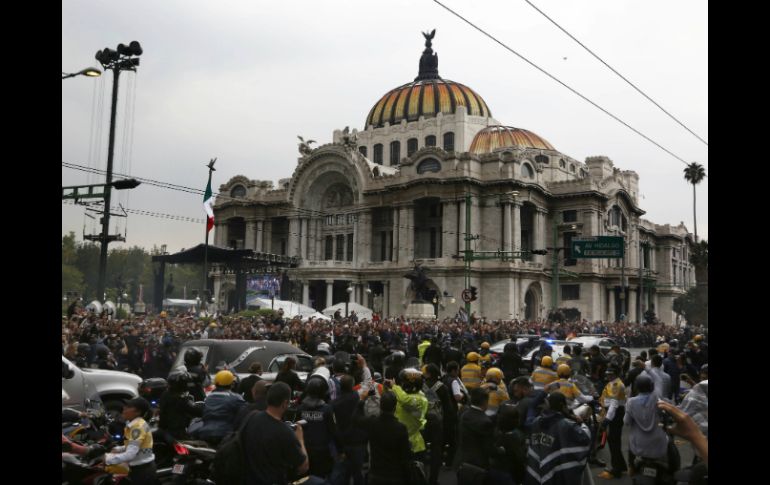 CIUDAD DE MÉXICO (05/SEP/2016).- Cuando ha pasado aproximadamente una hora del inicio del homenaje a Juan Gabriel en el Palacio de Bellas Artes, más de siete mil personas ya han pasado a despedirse de “El Divo de Juárez”.De acuerdo con el Instituto Nacional de Bellas Artes (INBA), dependiendo del flujo de gente, se contemplará la posibilidad de que el palacio permanezca abierto toda la noche. Lo que sí se aseguró es que pase lo que pase, el palacio se cerrará mañana a las 19:00 horas.Aproximadamente a las 16:15 horas el convoy con las cenizas del cantante arribó al recinto, luego de un recorrido desde el Aeropuerto Internacional de la Ciudad de México.Ya cerca de las 17:00 horas Iván Gabriel Aguilera, hijo del cantante, salió acompañado por su esposa para colocar las cenizas al centro de las escalinatas que dan paso a las puertas del teatro en el palacio.La primera guardia de honor fue realizada por Iván Gabriel y su esposa; Rafael Tovar y de Teresa, secretario de Cultura; Jesús Salas, mánager del cantante; Silvano Aureoles, gobernador de Michoacán; María Cristina García Cepeda, directora del INBA y Enrique Serrano, presidente municipal de Ciudad Juárez.Con el sonido del mariachi “Mi Tierra” de fondo, inició el homenaje, en el que cantó Fernando de la Mora el tema “Amor eterno”. A partir de ese momento comenzó a pasar el público al recinto.Después de De la Mora tomó el micrófono Aída Cuevas, quien visiblemente conmovida interpretó otros éxitos de Juan Gabriel como “Te sigo amando” y “Te lo pido por favor”.Autoridades culturales estiman que entre 500 mil y 700 mil personas despedirán a Juan Gabriel, una cifra mayor a la registrada en las despedidas de Mario Moreno “Cantinflas” y el escritor Gabriel García Márquez.+Lee más noticias sobre la muerte de Juan Gabriel