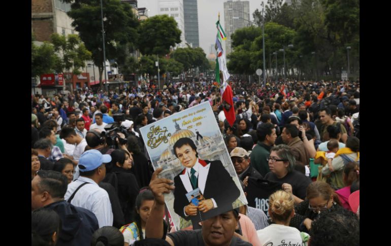 CIUDAD DE MÉXICO (06/SEP/2016).- Hasta las 11:00 horas de este martes, medio millón de personas, de acuerdo con organizadores, habían visitado desde ayer el Palacio de Bellas Artes para rendirle tributo a Juan Gabriel.Alrededor de esa hora se conformó una doble fila debido a la alta demanda de gente que deseaba despedir al michoacano fallecido el pasado 28 de agosto.En el vestíbulo del inmueble, donde se encuentran las cenizas del cantante, comenzó a tocar el mariachi Gama Mil y se tenía previsto que al al mediodía la Orquesta Sinfónica del Estado de México lo haga en la explanada del Palacio de Bellas Artes.La Sonora Santanera ocuparía el mismo sitio pasadas las 14:00 horas.Ayer lunes, aproximadamente a las 16:45 horas, inició el homenaje a Juan Gabriel, cuando su hijo Iván colocó las cenizas y comenzó a tocar el mariachi Mi Tierra, con Fernando de la Mora interpretando "Amor Eterno".Aída Cuevas, Jas Devael, Alejandra Ávalos y Pablo Montero fueron otros de los famosos en rendirle homenaje y cantarle al “Divo de Juárez".Cerca de las 22:00 horas se confirmó que el palacio permanecería abierto toda la noche para recibir a todas las personas que quisieran despedirse del cantante. Las cenizas regresarán hoy a Ciudad Juárez.