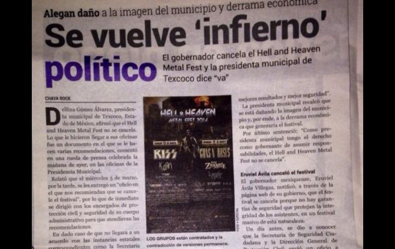 Entretenimiento | Miles de jóvenes tenían boletos y hospedaje en hoteles para asistir al concierto Metaleros, desilusionados por cambios en el 'Hell & Heaven' Miles de jóvenes tenían boletos de entrada y hospedaje en hoteles para asistir al concierto metalero Por: SUN 9 de marzo de 2014 - 13:31 hs Las personas que pretendían asistir al concierto expresan su descontento en redes sociales. Foto: @Chava_Rock. ESPECIAL / TOLUCA, ESTADO DE MÉXICO (09/MAR/2014).- Kristian Ávila, y su novia Ximena Miller ambos de 26 años, comenzaron a prepararse desde el año pasado para asistir al concierto " Hell & Heaven" que se realizaría en Texcoco y, al igual que miles de jóvenes, ya tenían no sólo boletos de entrada, sino incluso de hospedaje en hoteles de ese municipio, cuyo nivel de reserva de habitaciones para esos días está agotado. Ahora, al recibir el jueves pasado la noticia de la cancelación, los desilusionados rockeros aseguran que es inentendible la medida adoptada por el gobierno del Estado de México, cuando desde el año pasado se había estado difundiendo y vendiendo masivamente el evento, sin que las autoridades mexiquenses externaran ninguna advertencia o alerta sobre un eventual riesgo. Ximena asegura que incluso durante la presentación oficial del concierto en el Distrito Federal el año pasado estuvieron presentes tanto representantes de la empresa organizadora, como autoridades de Texcoco y del propio gobierno mexiquense y jamás, dice, señalaron algún posible cambio o que el evento estuviera sujeto a autorización. Asegura que la noticia de la cancelación los tomó por sorpresa, ya que miles de jóvenes del Distrito Federal, hicieron gastos colaterales en hospedaje, comida y transporte que ahora no podrán recuperar. Para asistir al evento la joven consultora en una prestigiada compañía de la Ciudad de México, pidió de forma anticipada un día de vacaciones y un permiso especial para poder tener tres días libres. Ahora, de cambiarse el lugar y la fecha para el concierto, ya no podrá modificarlos. Tanto Christian como Ximena compraron boletos VIP a un costo de tres mil pesos cada uno y la posibilidad de recuperar su dinero está abierta, pero aseguran que de llevarse el concierto a una entidad lejana no podrán asistir y mucho menos podrán recuperar el dinero. Temas Música Conciertos Heavy Metal Recibe las últimas noticias en tu e-mail Todo lo que necesitas saber para comenzar tu día Registrarse implica aceptar los Términos y Condiciones