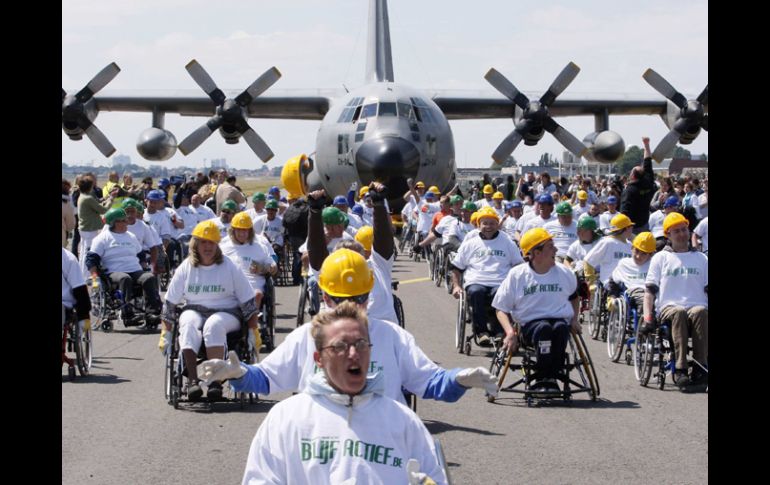 Entretenimiento | Marcan nuevo récord Guinness de tracción de un C-130 Personas en sillas de ruedas mueven un avión de 67 toneladas Bélgica logró hoy un nuevo récord de tracción del avión de transporte Hércules C-130 por parte de 84 personas en sillas de ruedas Por: EFE 29 de mayo de 2011 - 15:03 hs El hito fue logrado en el aeropuerto militar de Melsbroek. REUTERS / BRUSELAS, BÉLGICA (29/MAY/2011).- Bélgica logró hoy un nuevo récord de tracción del avión de transporte Hércules C-130 por parte de personas en sillas de ruedas, según informa la agencia de noticias local Belga. El hito fue logrado en el aeropuerto militar de Melsbroek (cerca de Bruselas), donde 84 personas en sillas de ruedas movieron el pesado avión de 67 toneladas a lo largo de 100 metros. La prueba se organizó con motivo del rally motociclista "Indian Day" que cada año sale de la base militar de Melsbroek. El récord será homologado por el libro Guinness, según informa la citada agencia. Temas Curiosidades y absurdos Aviones Récords Guinness Lee También Maestros se revelan ante programa "La escuela te extraña", acusan aumento de carga laborar Buen Fin 2025: Esto es lo que debes revisar antes de comprar una pantalla La fruta NO favorita de muchos que aporta vitamina A y C al cuerpo Beneficios a la salud que deja el uso de bicicleta fija Recibe las últimas noticias en tu e-mail Todo lo que necesitas saber para comenzar tu día Registrarse implica aceptar los Términos y Condiciones