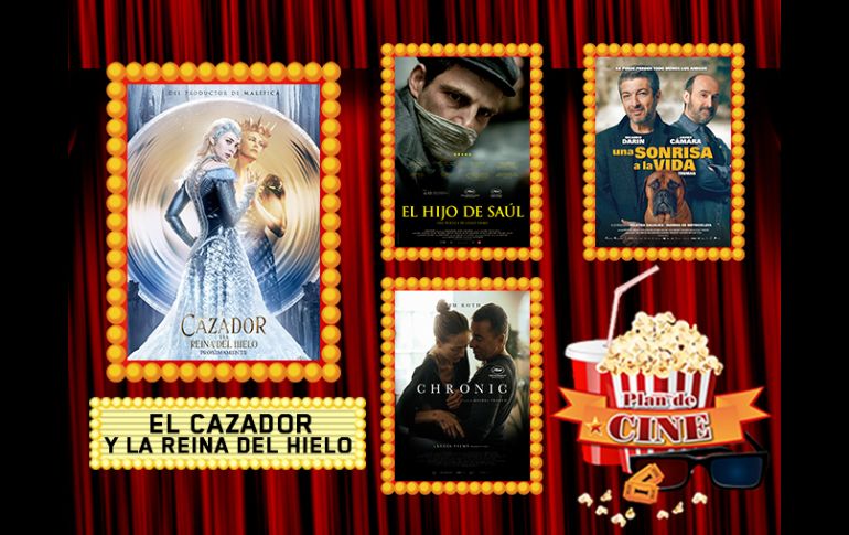 Entretenimiento | Seis películas son las que renuevan la cartelera en nuestra ciudad Plan de Cine: El cazador y la reina del hielo Seis películas son las que renuevan la cartelera en nuestra ciudad Por: EL INFORMADOR 7 de abril de 2016 - 17:11 hs GUADALAJARA, JALISCO (07/ABR/2016).- Esta semana tenemos el estreno de seis películas en la cartelera de nuestra ciudad. Checa la videocápsula y conoce el comentario de Arturo Garibay y arma tu propio Plan de Cine. Eric está de regreso con 'El cazador y la reina del hielo', que trae de nuevo a Chris Hemsworth y Charlize Theron e incorpora a Emily Blunt y Jessica Chastain. También tendremos el estreno de 'El Hijo de Saúl', 'Chronic' y 'Una sonrisa a la vida'. Además, Bradley Cooper regresa a la gran pantalla con 'Una buena receta' y en la categoría del terror tenemos a 'Juegos demoniacos'. No te pierdas una nueva entrega de 'Plan de Cine' todos los jueves en EL INFORMADOR. Temas Cine Estrenos Cine Películas Plan de Cine Lee También La recomendación de hoy en la cartelera de cine es “Frankie y los monstruos” Esta es la Mejor Película en el Festival de Cine de Morelia ¿Qué hacer hoy en Guadalajara? Actividades GRATIS este 18 de octubre Gael García combate el miedo a través del cine Recibe las últimas noticias en tu e-mail Todo lo que necesitas saber para comenzar tu día Registrarse implica aceptar los Términos y Condiciones