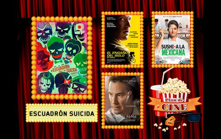 GUADALAJARA, JALISCO (04/AGO/2016).- Esta semana, tenemos la llegada de cinco nuevas películas a la cartelera de cine en Guadalajara y sobre cada una de ellas nos habla Arturo Garibay en esta nueva edición de Plan de Cine.“Escuadrón Suicida” llega a los cines luego de una larga espera. También tenemos la presencia de ben Foster como Lance Armstrong en “El engaño del siglo”, mientras que Keanu Reeves llega en “El abogado del mal”.“Sushi a la mexicana” es otro de los filmes que arriban a la cartelera, junto con la francesa “3 corazones”.¡Tenemos regalos!Llévate artículos promocionales de "La vida secreta de tus mascotas" y de "Cuando las luces se apagan". Sigue nuestra dinámica en redes sociales.