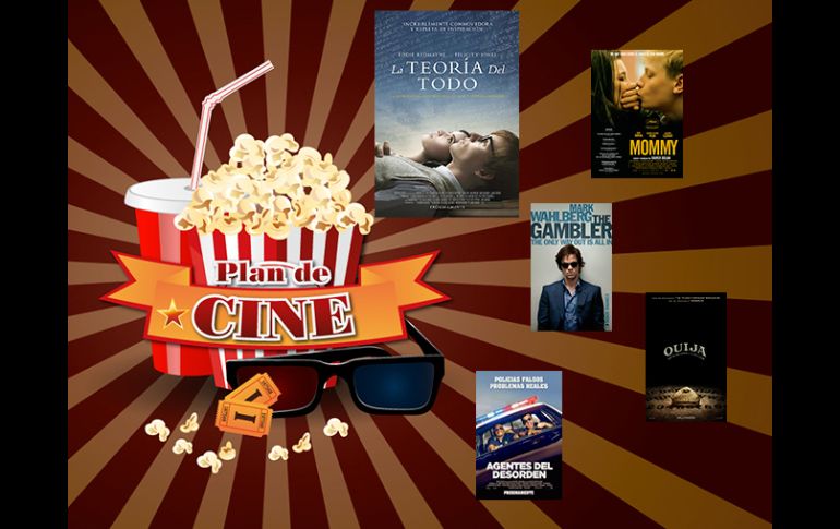 Entretenimiento | Son cinco las nuevas películas que llegan esta semana a la cartelera de Guadalajara Plan de Cine: La teoría del todo Son cinco las nuevas películas que llegan esta semana a la cartelera de Guadalajara Por: EL INFORMADOR 7 de enero de 2015 - 17:49 hs GUADALAJARA, JALISCO (07/ENE/2015).- La cartelera tapatía recibe cinco nuevas películas esta semana. Te invitamos a conocer un poco sobre ellas para que armes tu Plan de Cine. “La teoría del todo” es un emotivo y elegante drama biográfico que gira en todno al celebre científico Stephen Hawking y su relación con su esposa Jane. Una película simplemente imperdible. Por otro lado, también llega lo nuevo del cineasta Xavier Dolan, con “Mommy”, en la que mantiene la calidad narrativa y potencia dramática que ya mostró en “Tomen el granero”. Es la historia de una madre y su hijo indomable en una relación que parece destinada al fracaso, aunque el amor podría superar los obstaculos del camino. “El Apostador” es una nueva versión del filme que en su momento protagonizó James Caan y que ahora es protagonizado por Mark Wahlberg, donde interpreta a un profesor que tiene un serio problema con las apuestas. Para los amantes del terror llega “Ouija”, donde un grupo de amigos deben afrontar una velada infernal tras ponerse a jugar con la famosa tabla que sirve para contactar espíritus del más allá. Por último llega “Agentes del desorden”, una comedia policíaca que trata sobre dos amigos que se disfrazan de policías para una fiesta, pero pronto ven la posibilidad de hacerse pasar por policías verdaderos. ¡Tenemos regalos! Este domingo 11 de enero a las 10:30 horas se llevará a cabo la premiere de “Annie” en Cinépolis Galerías. Para poder obtener pases para la función sólo debes seguir nuestra dinámica en la página de Facebook de El Informador. Temas Cine Estrenos Cine Películas Plan de Cine Lee También Adiós a Diane Keaton, ganadora del Oscar y musa de Woody Allen Esto es todo lo se sabe sobre la secuela de "Minecraft" Del Toro aseveró que quería hacer de "Frankenstein" un proceso "doloroso" Esta es la mejor película mexicana de terror, según la Inteligencia Artificial Recibe las últimas noticias en tu e-mail Todo lo que necesitas saber para comenzar tu día Registrarse implica aceptar los Términos y Condiciones