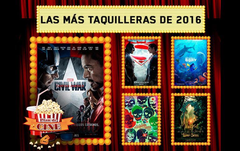 GUADALAJARA, JALISCO (06/ENE/2017).- Dimos un vistazo al 2016 para recordar cuáles cintas fueron las más taquilleras durante ese año y tenemos que los superhéroes se adueñaron de la taquilla ya que tres de las más taquilleras tienen que ver con este universo.En el quinto lugar tenemos a "El Libro de la Selva", la versión en acción real del clásico de Disney. En cuarto lugar tenemos a “Buscando a Dory”, la secuela de la exitosa película de Disney y Pixar “Buscando a Nemo”.En tercer lugar tenemos “Escuadrón Suicida”, la tercera película dentro del Universo Extendido de DC en el Cine, y en segundo lugar tenemos a “Batman vs Superman: El origen de la justicia”, perteneciente al mismo universo. Y como parte de otro universo tenemos a “Capitán América: Civil War” como la más taquillera del año.Para este 2017 ¿Cuáles crees que serán las más taquilleras?