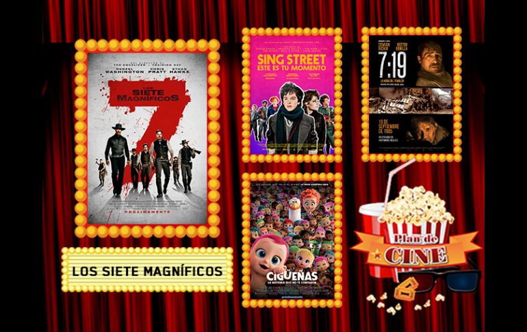GUADALAJARA, JALISCO (22/SEP/2016).- Esta semana, la cartelera de cine de Guadalajara recibe a siete nuevas cintas y sobre cada una de ellas nos habla Arturo Garibay, así que checa la videocápsula y arma tu Plan de Cine.“Los Siete Magníficos” es una de los grandes blockbusters del año y este fin de semana por fin llega a los cines. También tenemos la recomendable “Sing Street. Este es tu momento” y la comedia animada “Cigüeñas, la historia que no te contaron”.“La luz entre los océanos” es otra de las películas que llegarán esta semana, junto con “7:19. La hora del temblor”, “Atentado en París” y “Rescate Suicida”¡Tenemos boletos!Asiste a la premiere de "Treintona, soltera y fantástica" en Cinépolis La Gran PLaza y podrás conocer a Barbara Mori y Marimar Vega. Participa por un pase doble en nuestras redes sociales¡Tenemos regalos!Gánate una playera de 'Star Trek Sin Límites'. Participa en la dinámica en nuestras redes sociales.No te pierdas una nueva entrega de 'Plan de Cine' todos los jueves en EL INFORMADOR.