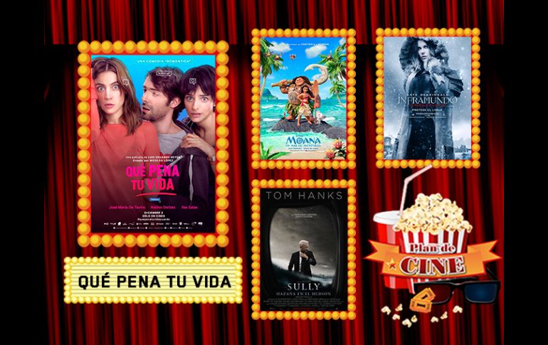 GUADALAJARA, JALISCO (02/DIC/2016).- Esta semana, la cartelera de cine de nuestra ciudad se renueva con la llegada de cinco películas, y sobre cada una de ellas nos habla Arturo Garibay en esta edición de Plan de Cine.Tenemos el estreno de "Qué pena tu vida", la comedia mexicana protagonizada por José María de Tavira, Ilse Salas y Aislinn Derbez. También tenemos el estreno de "Moana, un mar de aventuras" y de "Sully Hazaña en el Hudson"."Inframundo: Guerras de Sangre" también se estrena este fin de semana, al igual que la francesa "Saint Amour Una cata de vida".¡Tenemos regalos!Gánate uno de los regalos que Warner Bros. Pictures y Plan de Cine tienen para ti con motivo de "Animales Fantásticos y dónde encontrarlos". Sigue la dinámica en nuestras redes sociales para ganar uno de esos regalos.No te pierdas una nueva entrega de 'Plan de Cine' todos los jueves en EL INFORMADOR.