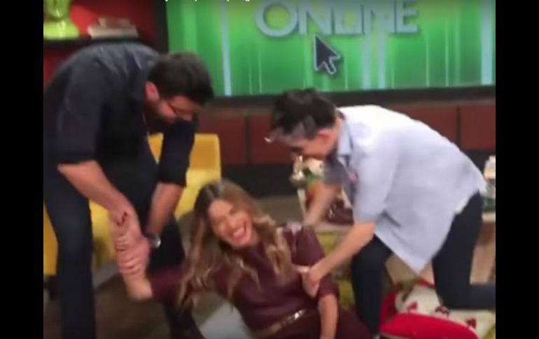 CIUDAD DE MÉXICO (28/DIC/2016).- Galilea Montijo, conductora del programa “Hoy”, fue captada en plena caída luego de tratar de hacer una broma a sus compañeros.En el Facebook oficial del programa se compartió un video en donde se ve a Paul Stanley, Raúl Araiza y Maca Carriedo hablando durante un corte comercial.De pronto Galilea se acerca junto a Natalia Téllez tratando de asustarlos pero tropieza y termina en el suelo, entre las risas de sus compañeros, quienes trataron de ayudarla a levantarse.Hasta ahora, Montijo no ha hecho comentarios en sus redes sociales acerca de su caída.El pasado octubre Galilea Montijo estuvo como invitada en el programa “Despierta América”, de Univisión, lo que levantó rumores de una posible salida de “Hoy”.Sin embargo, aclaró que seguirá con su trabajo en el programa de Televisa.