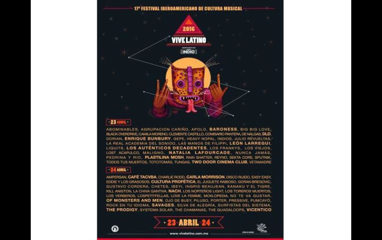 Entretenimiento | El festival se realizará los días 23 y 24 de abril en el Foro Sol Revelan cartel del Vive Latino 2016 El festival se realizará los días 23 y 24 de abril en el Foro Sol Por: EL INFORMADOR 1 de diciembre de 2015 - 16:08 hs La venta al público en general será el 4 de diciembre. TWITTER / Vive Latino GUADALAJARA, JALISCO (01/DIC/2015) El Festival Vive Latino ha revelado el cartel que conformará la edición número decimoséptima de uno de los eventos con mayor convocatoria en el país. El año pasado la cabeza de cartel la conformaban artistas de la talla de Robert Plant, Interpol o Die Antwoord, está ocasión la lideran The Prodigy, Two Door Cinemay Café Tacvba. El festival se realizará en el Foro Sol los días 23 y 24 de abril, teniendo preventa especial para tarjetahabientes Banorte mañana (2 de diciembre) y venta el público general partir del 4 de diciembre. Te presentamos el costo de los boletos: Boleto por día: $980 pesos Abono 2 días:$1,306 pesos Sección Platino por día: $1,130 pesos Abono Platino dos dias 1, 570 pesos EL INFORMADOR / HÉCTOR NAVARRO Temas Música Conciertos Vive Latino Lee También Fiestas de Octubre 2025: cartelera por fecha en el Auditorio Benito Juárez Fiestas de Octubre en Guadalajara: 60 años siendo la feria más mexicana Napoleón une su voz con La Sonora Dinamita en una colaboración inédita Objetos con los que NO puedes ingresar a las Fiestas de Octubre 2025 Recibe las últimas noticias en tu e-mail Todo lo que necesitas saber para comenzar tu día Registrarse implica aceptar los Términos y Condiciones