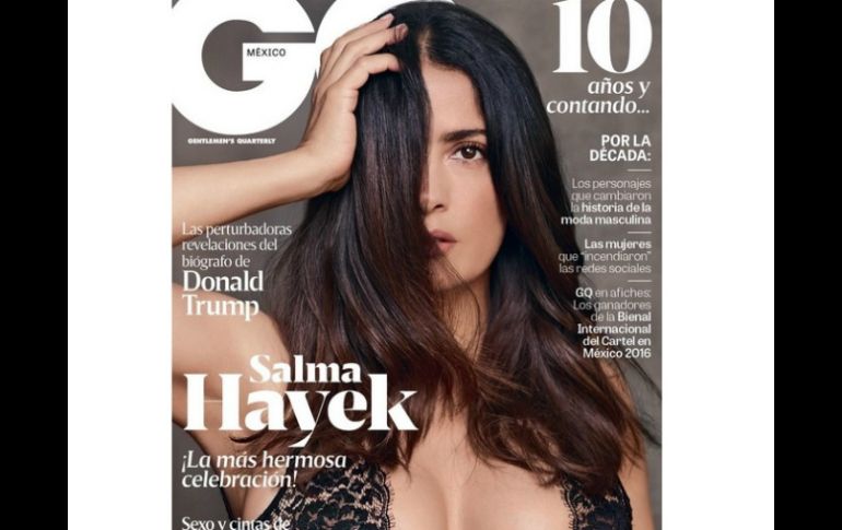 CIUDAD DE MÉXICO (26/OCT/2016).- La actriz Salma Hayek compartió con sus seguidores en Instagram una fotografía de la portada de una revista en la que luce su lado sexy.Salma es protagonista de la portada del décimo aniversario de “GQ” México, según informó ella misma para acompañar la fotografía.En la portada aparece con el cabello suelto y muestra su famoso escote.Hayek se ha mantenido activa en su apoyo a Hillary Clinton para lograr la presidencia de Estados Unidos.Esta semana ofreció una conferencia en la que dijo que Donald Trump es “peligroso”.La actriz ofreció una conferencia para llamar a los latinos a votar por Hillary Clinton.Días antes había revelado que Trump la invitó a salir pese a que ella tenía novio y “plantó” una historia falsa sobre ella cuando lo rechazó.En su cuenta de Instagram publicó la semana pasada una fotografía en la que mandaba “saludos” a Donald Trump con un cactus en forma de mano levantando el dedo medio.