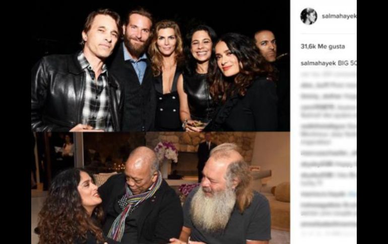 CIUDAD DE MÉXICO (08/SEP/2016).- Después de festejar junto a Eugenio Derbez, la actriz mexicana Salma Hayek continuó con las celebraciones por sus 50 años junto a otros famosos como Bradley Cooper y Olivier Martinez.El pasado viernes, la actriz llegó al medio siglo de vida y dijo que no se siente vieja.Hace unos días, Salma festejó junto a Derbez, con quien actuó en “How to be a latin lover”, Alessandra Rosaldo, Yolanda Andrade y Montserrat Oliver.Ayer, Hayek compartió en Instagram una fotografía en la que aparece con Olivier Martinez (ex de Halle Berry) y con Bradley Cooper, novio de la modelo Irina Shayk.En la imagen también aparece Montserrat Oliver.“BIG 50th Bday”, escribió Salma para acompañar la imagen.