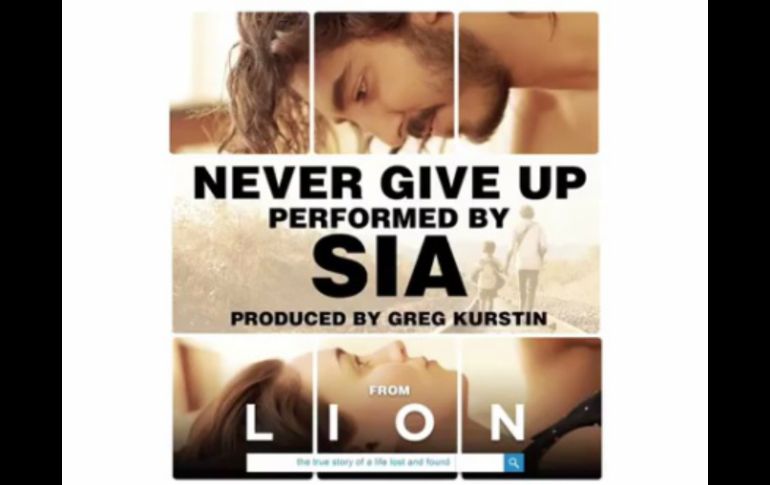 CIUDAD DE MÉXICO (18/NOV/2016).- La cantante australiana Sia estrenó su nuevo sencillo "Never give up", el cual forma parte de la banda sonora del filme "Lion" que cuenta con las actuaciones de Dev Patel, Rooney Mara y Nicole Kidman.Sia sorprendió a sus fans con la salida de esta canción, de acuerdo con el portal Variety Latino; dicho corte ya se encuentra disponible en una plataforma de descargas digitales."Never give up" contó con la producción de Greg Kurstin y forma parte de dicha película que llegará a las salas de cine estadunidense a partir del 25 de noviembre."Lion" se centra en la historia de "Saroo" (Patel), el hijo adoptivo de "Sue" (Kidman), quien siendo niño se pierde en las calles de Calcuta y se aleja accidentalmente de su familia biológica, y tras ser encontrado por una familia adoptiva, desea buscar a sus padres biológicos 25 años después.