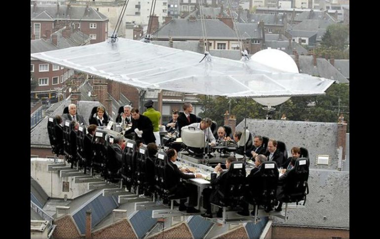 Entretenimiento | El Bosque de Chapultpec es el próximo destino de la atracción Una cena de altura Este es un proyecto que se realiza desde hace 7 años al rededor del mundo y es llamado ''Dinner in the Sky'' y por primera vez llega a México Por: EL INFORMADOR 18 de julio de 2013 - 12:58 hs Los costos para disfrutar de esta experiencia, van desde los 1,700 hasta los 3,000 pesos. ARCHIVO / GUADALAJARA, JALISCO (18/JUL/2013).- ¿Te gustan las aventuras y experiencias extremas? Entonces, probablemente, esta cena sea ideal para ti. A primera vista, parecería que una cena no tiene nada particular y mucho menos emocionante, pero eso cambia cuando ésta misma se lleva a cabo en una grúa a 45 metros de altura suspendido. Este es un proyecto que se realiza desde hace 7 años al rededor del mundo y es llamado "Dinner in the Sky" y por primera vez llega a México. Después de haber pasado por París, Mónaco, El Gran Cañón, será en el Distrito Federal, sobre el Bosque de Chapultepec, donde se instalará el peculiar restaurante. Son 22 personas, las que forman la "mesa" que es elevada en grúa y el cupo es limitado. Las personas interesadas pueden hacer su reservación en la página oficial www.dinnerinthesky.com.mx Los costos para disfrutar de esta experiencia, van desde los 1,700 hasta los 3,000 pesos. EL INFORMADOR/ PATRICIA GALLARDO Temas Curiosidades y absurdos Notas curiosas de Entretenimiento Lee También Jueves fresco y con lluvia posible a esta hora en Guadalajara CURP Biométrica: Estos son los trámites y servicios que podrían pedirla Lista de frutas y alimentos que son de temporada en octubre Llega nuevo frente frío a México este día y afectará a esta región Recibe las últimas noticias en tu e-mail Todo lo que necesitas saber para comenzar tu día Registrarse implica aceptar los Términos y Condiciones