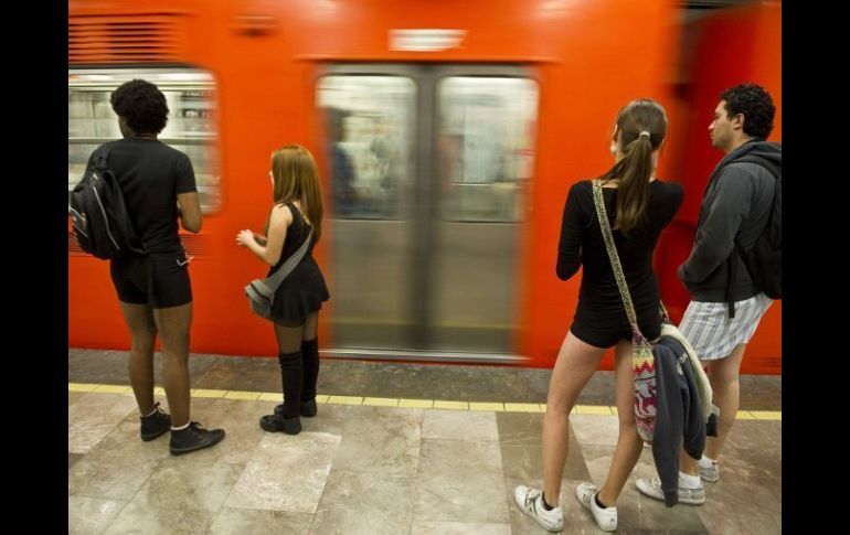 Entretenimiento | La capital mexicana es una de las 50 ciudades participantes en este 'flashmob' Usuarios del Metro viajan sin pantalones La capital mexicana es una de las 50 ciudades participantes en este 'flashmob' anual Por: SUN 8 de enero de 2012 - 15:48 hs Jóvenes aguardan el Metro en ciudad de México como parte del evento anual ''Viaje en metro sin pantalones''. AFP / CIUDAD DE MÉXICO (08/ENE/2012).- Varias personas en diversas ciudades pasean en ropa interior en el transporte subterráneo como parte del evento anual "Viaje en metro sin pantalones". La capital mexicana es una de las 50 ciudades participantes en este movimiento organizado por Improv Everywhere. En México quien coordina este evento es FlashMob. Los participantes necesitan como requisitos caminar de forma despreocupada y natural, así como "tener toda la actitud de quitarse los pantalones". Los paseantes iniciaron su "viaje ligero" por diversas estaciones del metro este domingo, el cual culminará en el Zócalo, según apuntan los organizadores. Además se podrá seguir este movimiento por medio de las redes sociales a través de la cuenta @fmmexico y con el hashtag #MetroSinPantalones. El No Pants Subway Ride es un evento anual iniciado por Improv Everywhere en la ciudad de Nueva York en 2002 con la idea de divertir a la gente, explica su sitio oficial. Entre las ciudades participantes están Ámsterdam, Londres, Barcelona, Buenos Aires, Sydney, Toronto, Viena, Washington DC, Zurich, entre otras Temas Transporte Público Curiosidades y absurdos Metro de la Ciudad de México Lee También Suman más de siete mil carpetas de investigación por huachicol fiscal El PAN, ¿refundar qué? El conflicto maicero PAN: relanzamiento y aburrimiento Recibe las últimas noticias en tu e-mail Todo lo que necesitas saber para comenzar tu día Registrarse implica aceptar los Términos y Condiciones