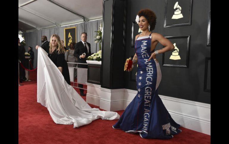 LOS ÁNGELES, ESTADOS UNIDOS (13/FEB/2017).- El llamativo vestido que Joy Villa llevó a los Grammy, con el lema "Make America Great Again", parece haber impulsado las ventas de su música.Su álbum de 2014 "I Make the Static" encabezaba la lista de discos pagados de Amazon, por encima de producciones de Beyoncé, Bruno Mars y Lady Gaga.El uso del slogan de la campaña presidencial de Donald Trump en el vestido que Villa lució el domingo generó una fuerte reacción de los simpatizantes de Trump y críticas en las redes sociales.La artista explicó su decisión en Instagram."Uno puede defender lo que cree o caer por lo que no", escribió. Y agregó: "Acepto las diferencias".Villa tiene todo un historial de trajes sensacionalistas en la alfombra roja. En 2015 llegó con un vestido hecho completamente con materiales reciclados.