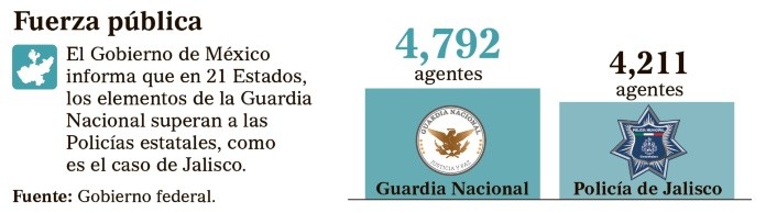 La Guardia Nacional fue creada en 2019 como parte de la estrategia de seguridad de Andrés Manuel López Obrador, por lo que ayer celebró cinco años de operaciones en la base de El Salto, en presencia de autoridades de todos los ámbitos. Actualmente hay 52 bases en Jalisco. Sin embargo, se construirán ocho más para tener una mayor presencia y efectividad en Lagos de Moreno, Tlajomulco de Zúñiga, Guadalajara, Tlaquepaque y Teocaltiche (municipio que demanda la instalación de un cuartel debido a la inseguridad).El festejo fue encabezado por el comandante de la XV Zona Militar, Crisóforo Martínez. Los agentes realizaron exhibiciones de actividades que realizan como parte de sus labores diarias, como detenciones y revisiones, detección de narcóticos, apoyo a civiles por fenómenos naturales y atención a explosivos. Oswaldo Iván Galicia, coordinador de la Guardia Nacional en Jalisco, destacó que los oficiales desempeñan distintas labores. “Cuenta con cuatro mil 792 elementos en condiciones de realizar acciones en cualquier parte de la Entidad, aplicando el plan de asistencia a la sociedad en caso de emergencia, seguridad vial y atención especializada al autotransporte federal, seguridad aeroportuaria y proximidad social”. Frente a los cinco años de operaciones hay opiniones encontradas entre especialistas en temas de seguridad. “No han sido eficaces ni eficientes, no han contenido los delitos que tendrían que prevenir, como los homicidios”, lamentó Rubén Ortega, académico de la Universidad de Guadalajara.José Pérez, presidente del Colegio de Abogados de Jalisco, señaló que la corporación cuenta con facultades y preparación para actividades, destacando su cooperación con otras fuerzas militares. “Tienen ya una preparación militarizada, tienen un amplio criterio en cuanto a la fuerza para el traslado y acciones”. Por su parte, Adolfo Gámez, abogado penalista, lamenta la falta de coordinación entre las autoridades de los tres niveles de Gobierno para detener a los sicarios, quienes asesinan en plena luz del día y en centros comerciales de gran afluencia, que siempre están vigilados, pero fallan en la detención de los criminales.El gobernador de Jalisco remarcó la creación de la corporación. Dijo que se trata de un pilar para la labor de la estrategia de seguridad. “A pesar de que han sido años de consolidación, tiempos de muchos ajustes, la Guardia ha hecho un buen trabajo y espero que se pueda fortalecer institucionalmente y que eso no implique debilitar a las Policías estatales y municipales porque es un asunto de complementariedad”, declaró.A cinco años de la creación de la Guardia Nacional por parte del Gobierno federal, encabezado por Andrés Manuel López Obrador, se destacó la aportación de la corporación en materia de coordinación con autoridades estatales y municipales.Rubén Ortega, académico de la Universidad de Guadalajara, señaló que, si bien la corporación tiene pendientes, resaltó que la Guardia Nacional ha tenido coordinación también con integrantes de otras corporaciones federales, como el Ejército Mexicano o la Secretaría de Marina, así como las policías estatales y municipales.“Algunos golpes esporádicos, han hecho algunas detenciones, han recuperado vehículos tipo monstruo, han incidido en algunas poblaciones donde se enfrentan y se han perdido vidas de la propia Guardia Nacional, pero también del crimen organizado. Hay momentos donde sí opera la coordinación entre la Guardia Nacional, la Sedena, la Marina y la Policía estatal y algunas municipales, hay momentos donde han operado con resultados”.La Guardia Nacional fue constituida a nivel federal en 2019 con el objetivo de actuar para lograr la recuperación de los espacios públicos y reafirmar el combate a los delitos que más afectan a la sociedad.Influye la cantidad de personal que integra la corporación: según el informe de la corporación proporcionado por la Secretaría de Seguridad y Protección Ciudadana, en México hay más de 120 mil elementos que integran la Guardia Nacional, muchos de ellos provenientes de la ya extinta Policía Federal, aunque también está integrada por elementos de la Secretaría de la Defensa Nacional, la Secretaría de Marina, entre otras corporaciones. Sin embargo, en 2020 eran poco más de 24 mil integrantes de la Policía Federal que formaban parte de la Guardia Nacional; hasta el último reporte, eran apenas 13 mil, mientras que de la Sedena eran poco más de 500. Sin embargo, la Guardia Nacional está bajo el mando de la dependencia federal tras la reforma impulsada por el Presidente, aunque hay también una resolución de la Suprema Corte de Justicia de la Nación (SCJN) que ordena que la Guardia Nacional tenga mando civil.En el último informe, se mencionó que la Guardia Nacional detuvo a más de tres mil personas y decomisó más de cuatro mil 600 vehículos, entre otros aseguramientos. Además, han apoyado en la atención de incidentes violentos registrados en el estado. Por ejemplo, en diciembre pasado, oficiales de la Guardia Nacional abatieron a dos personas y liberaron a una mujer que había sido privada de la libertad en hechos ocurridos en la colonia San Rafael de Guadalajara. En enero, en San Juan de los Lagos, los oficiales federales abatieron a un integrante de una célula delictiva tras una agresión perpetrada por hombres armados.Según datos del Inegi, a través de la Encuesta Nacional de Seguridad Pública Urbana, 73.6% de la población de 18 años y más consideró efectivo el desempeño de la Guardia Nacional durante marzo de 2024. En comparación con otras corporaciones, la GN se encuentra por arriba de los indicadores de efectividad que presentan las policías estatales.