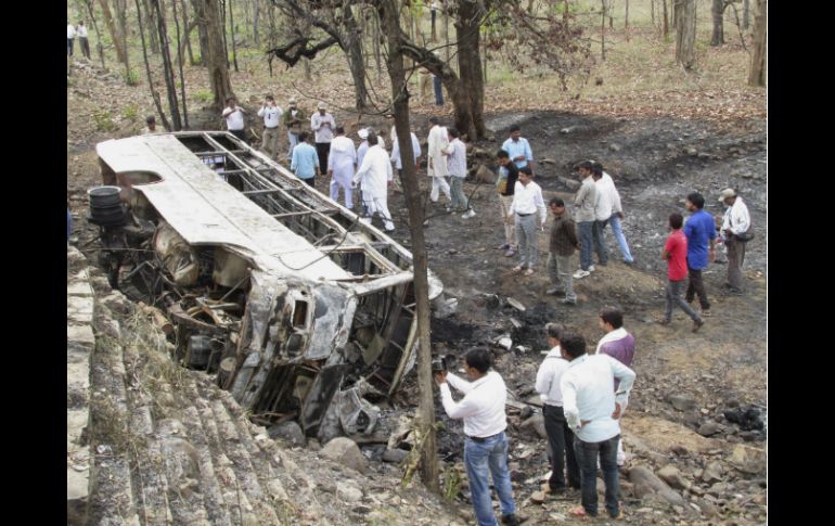 Internacional | El vehículo chocó contra un puente en el distrito de Panna, para después arder Accidente de autobús deja 22 muertos en India El vehículo chocó contra un puente en el distrito de Panna, para después comenzar a arder Por: EFE 4 de mayo de 2015 - 12:47 hs Varias personas se reúnen junto al autobús que se incendió mientras cubría una ruta corta entre las localidades de Chhatarpur y Satna. EFE / M. Pradesh NUEVA DELHI (04/MAY/2015).- Al menos 22 personas murieron y otras 12 resultaron heridas, dos de ellas de gravedad, al incendiarse el autobús en el que viajaban en el estado de Madhya Pradesh, en el centro de la India, informó una fuente policial. El vehículo chocó contra un puente del distrito de Panna sobre las 14.00 hora local (08.30 GMT), cayó a una cuneta y posteriormente comenzó a arder, dijo un portavoz policial de la zona, Rakesh Kumar Jain. Las fuerzas de seguridad recuperaron por el momento 22 cadáveres calcinados del interior del autobús siniestrado, según el agente, si bien algunos medios locales publicaron que el número total de muertos podría ascender a 35. Cuando ocurrió el accidente, entre 45 y 50 personas viajaban a bordo del vehículo, propiedad de una agencia de viajes privada y que cubría una ruta corta entre las localidades de Chhatarpur y Satna, ambas en Madhya Pradesh, de acuerdo con el diario indio Hindustan Times. Unas 125 mil personas mueren al año en accidentes de tráfico en la India, lo que le convierte en el país del mundo con mayor número de muertos en las carreteras. La mayoría de los accidentes en el gigante asiático se producen por el escaso respeto a las normas de circulación, el mal estado de los vehículos y de las carreteras, y la deficiente señalización. Temas Asia Accidentes en el mundo Muertes India Lee También ACTUALIZACIÓN del hallazgo de 60 cuerpos en la costa de Hermosillo México hará ajustes a los aranceles a países asiáticos Joven que disparó a David Cohen afirma que le ofrecieron dinero Viral: vendedor de carnitas es detenido por matar a extranjero a tubazos en la CDMX Recibe las últimas noticias en tu e-mail Todo lo que necesitas saber para comenzar tu día Registrarse implica aceptar los Términos y Condiciones