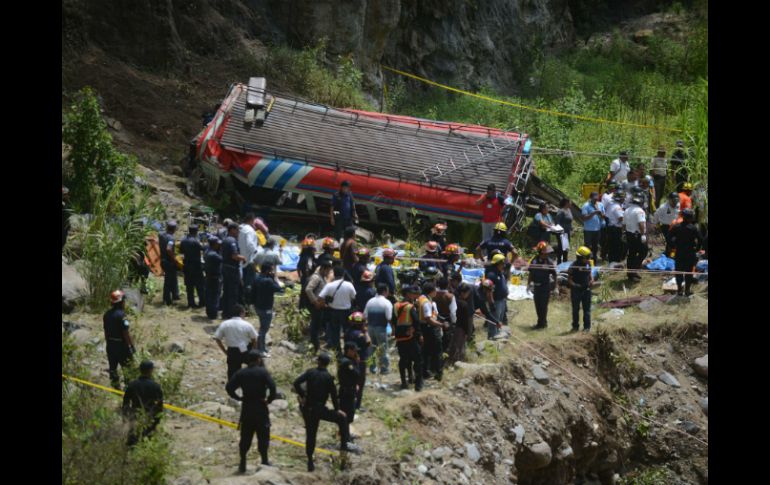 Internacional | Autoridades reportan a otras 40 personas heridas Accidente de autobús en Guatemala deja 43 muertos Autoridades reportan a otras 40 personas heridas quienes ya reciben atención médica en centros hospitalarios Por: EFE 9 de septiembre de 2013 - 13:49 hs Al autobús se precipitó 75 metros en línea recta a un barranco en uno de los accidentes más graves en Guatemala. AFP / GUATEMALA,GUATEMALA (09/SEP/2013).- Al menos 43 personas murieron hoy y otras 40 resultaron heridas al accidentarse un autobús sobrecargado de pasajeros, en su mayoría indígenas, en una carretera del oeste de Guatemala, confirmaron las autoridades y fuentes de socorro. El portavoz de los Bomberos Municipales Departamentales, Cecilio Chacaj, aseguró que 40 pasajeros murieron en el lugar del accidente y tres más en centros hospitalarios. Otros 40 pasajeros reciben atención en centros hospitalarios. El Ministerio Público (MP) identifica los 40 cuerpos en una morgue provisional instalada en el lugar del percance para entregarlos a los familiares luego del rescate de la hondonada. De las víctimas mortales, según el ministro de Salud, Jorge Villavicencio, 2 fallecieron en el hospital nacional de la ciudad colonial de Antigua debido a la gravedad de las heridas. El autobús de la empresa Transportes San Martineca había salido muy temprano desde San Martín Jilotepeque con destino a la cabecera departamental de Chimaltenango y posteriormente se dirigiría a la capital guatemalteca. Según Chacaj, el percance se registró a la altura del kilómetro 64, en el que el autobús se precipitó 75 metros en línea recta a un barranco. La mayoría de víctimas son indígenas que llevaban sus productos como verduras hacia los mercados para comercializarlos. Entre los fallecidos hay 10 mujeres, así como 8 menores de edad, entre ellos tres recién nacidos, de acuerdo con los socorristas que atendieron la emergencia. Algunos de los pasajeros, que vestían trajes típicos, salieron expulsados del autobús cuando cayó al abismo, en donde pasa el río Pixcayá. Chacaj aseguró que todos los heridos fueron evacuados del lugar del percance y trasladados a centros hospitalarios con ayuda de algunos particulares. Sergio Vásquez, de los Bomberos Voluntarios, explicó a radios locales que algunos pasajeros quedaron con fracturas expuestas en miembros inferiores y superiores, así como traumatismos. Detalló que varios de los fallecidos quedaron atrapados entre hierros retorcidos del autobús que se destruyó, y otros a un costado al haber sido expulsados por el impacto. Por ahora se desconocen las causas del accidente, aunque inicialmente se le atribuye a una posible falla en el sistema de frenos y al exceso de velocidad, según las autoridades. El ministro de Comunicaciones, Alejandro Sinibaldi, aseguró que la empresa propietaria del autobús tiene vigente la licencia y el seguro de accidentes. "Es una tragedia la que estamos viviendo, es triste y penosa la situación", sostuvo. Villavicencio destacó que al momento de tener conocimiento del accidente se activaron los comités de gestión de riesgo para atender a los heridos. El percance, según Vásquez, es uno de los más graves de los que se han registrado en Guatemala en los últimos años. El 28 de febrero de 2008 un autobús se accidentó en la denominada vuelta El Chilero, en jurisdicción de Barberena, en el departamento suroriental de Santa Rosa, con saldo de 48 muertos y 25 heridos. De acuerdo con el Ministerio de Comunicaciones, a diario en Guatemala se registran un promedio de 80 accidentes de tráfico en carreteras y áreas urbanas del país centroamericano debido al consumo de alcohol, a la imprudencia y el exceso de velocidad. Entre el 2009 y hasta julio de 2013, según estadísticas del Ministerio de Gobernación (Interior), 4.100 personas murieron y 23 mil quedaron heridas en accidentes viales en Guatemala. La mayoría de los aparatosos accidentes son protagonizados por autobuses de pasajeros, un el 20 % por conductores que manejan en estado de ebriedad y otra cantidad similar se le atribuye a problemas mecánicos de los automóviles, de acuerdo con el Departamento de Tránsito de la Policía Nacional Civil (PNC). Temas América Latina Accidentes en el mundo Muertes Guatemala Lee También Viral: vendedor de carnitas es detenido por matar a extranjero a tubazos en la CDMX Reportan carambola en autopista a Morelia Muere conductor tras choque entre camioneta y camión en Arandas Recibe las últimas noticias en tu e-mail Todo lo que necesitas saber para comenzar tu día Registrarse implica aceptar los Términos y Condiciones