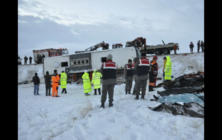 Internacional | Autoridades dan a conocer que otras 26 personas resultaron heridas Accidente de autobús en Turquía deja al menos 21 muertos Autoridades dan a conocer que otras 26 personas resultaron heridas Por: AFP 23 de enero de 2014 - 15:18 hs Según autoridades locales, el accidente se debió a un error del conductor. ARCHIVO / ANKARA, TURQUÍA (23/ENE/2014).- Al menos 21 personas murieron y 26 resultaron heridas el jueves en un accidente de autocar en la provincia turca de Kayseri, anunciaron fuentes oficiales. "Hay 21 muertos", dijo el gobernador de Kayseri, Orhan Düzgün. El vehículo se dirigía de Estambul a Kayseri y derrapó cuando se encontraba cerca de la localidad de Pinarbasi. Según el gobernador, el accidente se debió a un error del conductor. Temas Medio Oriente Turquía Accidentes en el mundo Muertes Lee También FGJ investiga cuál de los detenidos mató al abogado David Cohen Muere adulta mayor tras ser atropellada en Zapopan Aumenta a 72 la cifra de muertos por fuertes lluvias en México Ascienden a 70 los muertos por las lluvias de los últimos días Recibe las últimas noticias en tu e-mail Todo lo que necesitas saber para comenzar tu día Registrarse implica aceptar los Términos y Condiciones