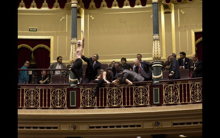 Internacional | Tres mujeres del movimiento feminista Femen interrumpen la sesión con su manifestación Activistas se desnudan en apoyo al aborto en el Congreso español Las tres mujeres, entre ellas la líder del movimiento Femen en España, Lara Alcázar, pasaron a disposición judicial acusadas de alteración del pleno del Congreso Por: EFE 9 de octubre de 2013 - 08:20 hs MADRID, ESPAÑA (09/OCT/2013).- Tres miembros del movimiento feminista "Femen" interrumpieron hoy el pleno del Congreso español semidesnudas y gritando "el aborto es sagrado", mientras intervenía el ministro de Justicia, Alberto Ruiz Gallardón. Las activistas, desnudas de cintura para arriba, llevaban escrito en el torso el mismo lema a favor de la interrupción voluntaria del embarazo. El Gobierno español tiene previsto aprobar próximamente una reforma de la ley del aborto que suprimirá la denominada "ley de plazos", aprobada en 2010 por los socialistas. Esta reforma ha sido criticada por alguna asociaciones feministas, los partidos de izquierda y otros colectivos sociales. Las activistas son seguidoras del movimiento "Femen" de origen ucraniano, una organización feminista cuyas militantes recurren a mostrar sus pechos en público como forma de protesta contra el machismo. Las tres mujeres, entre ellas la líder del movimiento "Femen" en España, Lara Alcázar, van a pasar a disposición judicial acusadas de alteración del pleno del Congreso. Temas Europa España Aborto Lee También España consigue su boleto a los cuartos de final del Mundial Sub-20 Derrumbe de edificio en Madrid deja cuatro desaparecidos y tres heridos Cuatro imperdibles para tu primera visita a Madrid FDA aprueba píldora abortiva pese a críticas de los conservadores en EU Recibe las últimas noticias en tu e-mail Todo lo que necesitas saber para comenzar tu día Registrarse implica aceptar los Términos y Condiciones