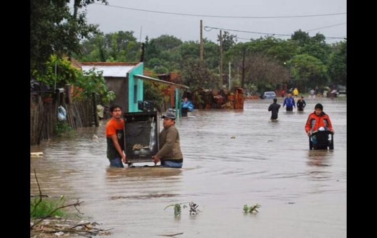 Internacional | Las autoridades han decretado estado de emergencia en las distintas ciudades afectadas Al menos 12 mil evacuados por inundaciones en Argentina Las autoridades han decretado estado de emergencia en las distintas ciudades afectadas Por: AFP 28 de junio de 2014 - 17:09 hs El desborde de los ríos Paraguay y Pilcomayo ha dejado cientos de familias perjudicadas. ESPECIAL / BUENOS AIRES, BUENOS AIRES (28/JUN/2014).- Unas 12 mil personas fueron evacuadas en las últimas horas por el desborde de los ríos Paraguay y Pilcomayo en el noreste de Argentina, informaron este sábado las autoridades de la provincia de Formosa (limítrofe con Paraguay), la más afectada. Los evacuados, habitantes de zonas costeras, se dividían entre Formosa, capital provincial, mil 200 kilómetros al norte de Buenos Aires, y la ciudad de Clorinda. "Esta extraordinaria crecida del río Paraguay, sumada a las persistentes lluvias, algunas de ellas de gran intensidad en poco tiempo, agravan aún más el ya de por sí complicado escenario", advirtió el ministro de Gobierno de Formosa, Jorge González. La gobernación, que estimó en ocho mil los evacuados en las distintas ciudades afectadas, decretó el viernes el estado de emergencia en esas zonas. En los últimos días llovieron en la región unos 400 milímetros y hay pronóstico de lluvia hasta el domingo, mientras que el río Paraguay alcanzó el viernes 8.54 metros en el puerto de Formosa, indicaron los registros de la Prefectura Naval. En la vecina provincia de Misiones, limítrofe con Paraguay y Brasil, fueron evacuadas unas tres mil 200 personas, aunque la gran mayoría se trasladó a casas de familiares y 200 estaban en centros de atención, dijo este sábado el gobernador de Misiones, Maurice Closs. "Esta es una etapa de contención de este enorme siniestro. Cuando empiece a bajar el agua vamos a ver los perjuicios y cómo se reparará", dijo Closs. Precisó que se trata "de la mayor crecida que registra la historia en Alba Posse, ElSoberbio, San Javier", poblaciones localizadas en las costas del río Uruguay. En tanto, en la provincia de Chaco el número de personas que debieron dejar su vivienda ascendía a mil 200. El gobierno federal envió este sábado a las poblaciones afectadas efectivos militares además de un helicóptero, camiones Unimog, cocinas y una planta potabilizadora, según un comunicado del ministerio de Defensa. Temas América Latina Damnificados Argentina Inundaciones en el mundo Lee También Poza Rica, inundado por desbordamiento del río Cazones México busca frenar el paso perfecto de Argentina en Mundial Sub-20 Lluvia caerá en Guadalajara; ¿afectará tormenta "Raymond"? Dónde ver EN VIVO el México vs Argentina por el Mundial Sub-20 Recibe las últimas noticias en tu e-mail Todo lo que necesitas saber para comenzar tu día Registrarse implica aceptar los Términos y Condiciones