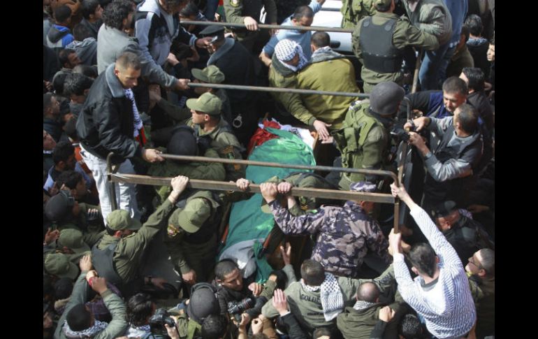 Internacional | El ministro israelí de Seguridad insta a autoridades palestinas a responsabilizarse Al menos siete heridos en choques entre palestinos y Ejército israelí Los enfrentamientos coinciden con el entierro de Arafat Yaradat, el preso palestino que murió el sábado en una prisión israelí a causa de posibles torturas Por: EFE 25 de febrero de 2013 - 10:39 hs Personas cargan el cuerpo de Arafat Yaradat (c) durante su funeral en Sair, cerca de Hebrón, Cisjordania. EFE / JERUSALÉN, ISRAEL (25/FEB/2013).- Al menos siete personas resultaron heridas en los enfrentamientos que tuvieron lugar en distintos puntos de Cisjordania entre manifestantes palestinos y fuerzas militares y policiales israelíes. Tres de los heridos se registraron cerca de la prisión de Ofer, al sur de Ramala, donde jóvenes palestinos arrojaron piedras a miembros de la Policía israelí de Fronteras. La agencia oficial palestina, Wafa, informó de que dos de ellos sufrieron impactos de bala y un tercero, también hospitalizado, el impacto en la cabeza de un bote de gas lacrimógeno. Los enfrentamientos tienen lugar en coincidencia con el entierro en el poblado de Sair de Arafat Yaradat, el preso palestino que murió el sábado en una prisión israelí a causa de posibles torturas. Su muerte originó una cadena de protestas en controles y retenes israelíes en el territorio ocupado de Cisjordania y hoy miles de personas se concentraron en Sair para el funeral. En el vecino distrito de Belén otros tres palestinos, entre ellos un adolescente de 13 años, resultaron heridos en los enfrentamientos, informó la agencia palestina Maan. Testigos relataron que el adolescente, Mohamed Jaled al-Kurdi, se encontraba en el campo de refugiados de El Aida cuando recibió varios impactos de bala en la espalda y una pierna. Uno de los parientes de la víctima informó de que su condición era estable y que ingresó en la unidad de cuidados intensivos después de haber sido operado para extraerle los proyectiles. Los otros dos heridos sufrieron el impacto en las piernas de balas de goma en enfrentamientos en ese campo de refugiados. El séptimo herido es un soldado israelí que sufrió una pedrada en el bloque de asentamientos judíos de Gush Etsión, en el distrito ocupado palestino de Belén. El ministro israelí de Defensa, Ehud Barak, está reunido esta tarde con los mandos militares, de la Policía y del Servicio de Prisiones para evaluar la situación en el terreno. Israel teme que la ola de violencia por la muerte de Yaradat, que se suma a la que ya había originado en las últimas dos semanas la huelga de hambre de cuatro presos palestinos, conduzca a un nuevo levantamiento palestino, popular o armado. El ministro israelí de Seguridad Pública, Isaac Aharonovich, afirmó en ese sentido que Israel "no está ante la tercera intifada", y apeló al liderazgo palestino a que actúe con responsabilidad. "Hay que comportarse con responsabilidad, sobre todo la otra parte (la palestina) que tiene la mayor parte de las responsabilidades", dijo el ministro durante una visita al Muro de las Lamentaciones, en Jerusalén, donde hoy la Policía había declarado el estado de alerta máxima. Temas Medio Oriente Conflicto Israel-Palestina Cisjordania Lee También Palestina raciona la comida ante miedo de que Israel rompa el alto el fuego Trump amenaza con 'erradicar' a Hamás si no respeta la tregua con Israel Netanyahu reacciona al bombardeo de Israel a Gaza pese a la tregua A pesar de tregua, Israel bombardea Gaza matando a 45 palestinos Recibe las últimas noticias en tu e-mail Todo lo que necesitas saber para comenzar tu día Registrarse implica aceptar los Términos y Condiciones