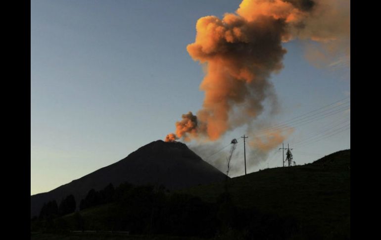 Las explosiones que produce el volcán, que experimenta un nuevo pulso desde el pasado fin de semana, se suceden cada media hora con diversas intensidades, según indicó la gobernadora (representante del Ejecutivo) en la provincia de Tungurahua, Lira Villalba.La ceniza que emana constantemente el coloso, por la acción de los vientos, ha llegado a varias provincias y, si bien hasta el domingo se había dirigido al sur, hasta la provincia de Loja, fronteriza con Perú, este lunes cambió de orientación y llegó a afectar algunos sectores de Quito (180 kilómetros al norte).Según Villalba, las proyecciones sobre la evolución de la actividad del volcán estimadas por los científicos que vigilan al coloso se enmarcan en dos escenarios.El primero de ellos calcula que el actual comportamiento se mantendría por dos o tres semanas y el segundo, menos probable, es que el conducto de la montaña se tapone, acumule energía y genere una nueva gran explosión, como la ocurrida el pasado sábado.Villalba aseguró que el Instituto Geofísico (IG) de la Escuela Politécnica Nacional mantiene una estrecha vigilancia sobre el comportamiento de la montaña, cuyo proceso eruptivo inició en 1999 y que se ha caracterizado por intercalar pulsos de gran actividad con lapsos de relativa calma.La explosión del sábado anterior, sin embargo, fue particularmente fuerte y produjo una nube como hongo que se elevó unos trece kilómetros sobre el cráter, una altura que no se había percibido antes, añadió la gobernadora.Además, la salida de flujos piroclásticos (rocas candentes pulverizadas) que descendieron rápidamente por algunas quebradas de la montaña, afectaron cultivos y vegetación y también se ha reportado la muerte de cinco vacas y quemaduras en otros animales, señaló la autoridad.Según Villalba, una de las partes más afectadas fue la quebrada de Juive, en el flanco noroeste, aunque también lo fueron zonas del sur y del occidente del macizo. Para la gobernadora, el fenómeno ocurrido el sábado "no fue normal" y fue diferente a otros pulsos eruptivos.El Estado, dijo, también se movilizó de inmediato para atender la emergencia, sobre todo en las labores de evacuación de personas en zonas de lato riesgo y en la provisión de mascarillas para proteger la respiración de los habitantes ante la presencia de ceniza.Pese a lo difícil de la situación, "la gente está tranquila", aunque atenta a la información de las autoridades, añadió Villalba.La situación ha motivado a las autoridades a declarar en estado de "alerta naranja" a las provincias de Chimborazo y Tungurahua, que tienen al coloso como límite. Según un último informe del Instituto Geofísico (IG) de la Escuela Politécnica Nacional, en las últimas 24 horas se han registrado 36 sismos leves de "largo periodo", relacionados con el movimiento de fluidos en el interior de la montaña.Además, se han contabilizado 5 episodios de tremor (temblor leve) armónico y otros 70 por la emisión constante de ceniza y gases.También se han reportado 27 explosiones de intensidad moderada a baja y se ha reportado la caída de ceniza en poblados cercanos como Baños de Agua Santa, Quero, Ambato, Guadalupe y Pelileo, además en las lejanas poblaciones de Machachi, Sangolquí, el Valle de los Chillos y barrios del sur de Quito. Habitantes de localidades cercanas como Bilbao, Choglontus y El Manzano, en la provincia de Chimborazo, son evacuados por las noches como medida preventiva ante la alta actividad volcánica, aunque vuelven en las mañanas para atender los cultivos agrícolas y el ganado. El Tungurahua, de 5.016 metros de altura y que comenzó su actual proceso eruptivo en 1999, forma parte del más de medio centenar de volcanes con los que cuenta Ecuador y, junto al Reventador y Sangay, forma parte de los más activos del país.