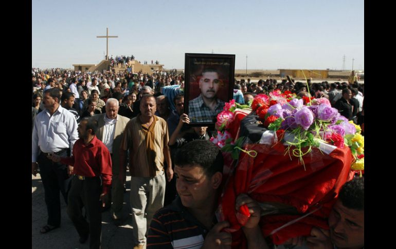 Internacional | Número de cristianos se reduce Amenaza Al-Qaeda en Iraq con más asesinatos de cristianos Tras el ataque a una iglesia católica que provocó 58 muertes, el grupo Al-Qaeda dijo que continuarán los ataques contra cristianos, afirmando que no levantará 'la espada mortífera de sus cuellos' Por: AP 3 de noviembre de 2010 - 07:54 hs Después del ataque contra los cristianos en una iglesia de Bagdad, Al-Qaeda amenaza con seguir con los atentados. AFP / BAGDAD, IRAQ (03/NOV/2010).- El grupo de avanzada de Al-Qaida en Iraq amenazó más violencia contra los cristianos después de un sangriento ataque a una iglesia de Bagdad que dejó 58 muertos, afirmando que no levantará "la espada mortífera" de sus cuellos. La advertencia del Estado Islámico de Iraq de desatar mayor violencia contra los cristianos tiene lugar dos días después que el grupo atacó una iglesia católica en el centro de Bagdad, en el ataque más mortífero jamás registrado contra los cristianos en ese país. El número de cristianos se ha reducido drásticamente desde la invasión estadounidense del 2003 con la huida hacia otros países. "Abriremos sobre ellos las puertas de la destrucción y desataremos ríos de sangre", amenazó el grupo insurgente en una declaración cargada el martes por la noche en cibersitios de milicianos. El Estado Islámico de Iraq, un grupo que engloba Al-Qaida en Iraq y otras facciones suníes insurgentes, agregó que ha expirado su plazo para que la Iglesia copta cristiana en Egipto ponga en libertad a musulmanas que los milicianos dicen están cautivas. "Como consecuencia, todos los centros, organizaciones e instituciones cristianas, líderes y feligreses, son blancos legítimos para los mujaidines donde puedan encontrarlos", dijo el grupo. La declaración no especificó ningún sitio. La liberación de las mujeres en Egipto fue una de las exigencias de los milicianos durante el ataque del domingo por la noche, junto con la libertad de prisioneros de Al-Qaida en Iraq. El ataque al templo horrorizó a la comunidad cristiana iraquí, cientos de cuyos miembros se reunieron el martes para un servicio fúnebre en Bagdad. Uno de los dignatarios leyó una carta del papa Benedicto XVI. "Durante años la violencia no ha dejado de azotar este país, y los cristianos se están convirtiendo en el blanco de estos crueles ataques terroristas", dijo la carta. Aunque los cristianos fueron el blanco de la violencia el domingo, los chiíes fueron los más perjudicados en una serie de 13 ataques el martes en vecindarios en toda la capital. El miércoles, la cifra de muertos en esos hechos de violencia trepó a 91 personas, según la policía y los hospitales. Temas Medio Oriente Al Qaeda Iraq Iglesia Católica Lee También ¿Cuál será la ruta de la Romería de Zapopan 2025? Llega "La Niña" y este será su impacto según las predicciones Cierres viales por la Romería 2025 comienzan este jueves La gran reunión mágica Recibe las últimas noticias en tu e-mail Todo lo que necesitas saber para comenzar tu día Registrarse implica aceptar los Términos y Condiciones