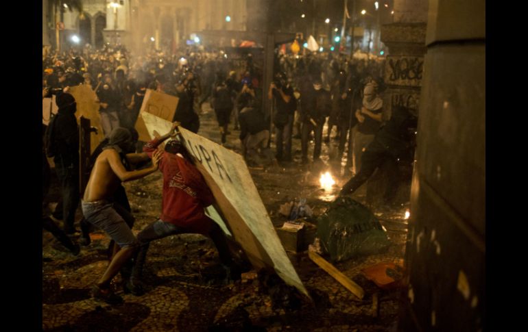 Internacional | Saquean edificios del centro de la ciudad Anarquistas se enfrentan a policía en Río de Janeiro Saquean edificios del centro de la ciudad Por: AFP 7 de octubre de 2013 - 20:04 hs Anarquistas realizan saqueos y distintos disturbios en la ciudad. AP / RÍO DE JANEIRO, BRASIL (07/OCT/2013).- Una marcha en apoyo a los maestros en huelga de Rio de Janeiro, que reunió a más de 10 mil personas, terminó este lunes con enfrentamientos entre la Policía y anarquistas enmascarados, que depredaron edificios en el centro. La manifestación comenzó en la tarde y la presencia de la policía fue discreta. Pero entrada la noche, cuando los manifestantes llegaron al Concejo Municipal se registraron los primeros focos de violencia. Un autobús fue incendiado en el medio de la transitada avenida Rio Branco, los vidrios de varios kioscos y agencias bancarias fueron destruidos e incluso sillones fueron extraidos para usarlos de barricada. El batallón de choque dispersó a los manifestantes con bombas lacrimógenas. Unos 200 enmascarados del grupo anarquista 'Black Blocs' trataron de invadir el edificio público, lanzando bombas improvisadas contra la fachada y quemando basura en la calle. La policía, que terminó pidiendo apoyo del batallón de choque, respondió con gases lacrimógenos. "Sin Policía no hay violencia, cuando están siempre hay", dijo antes de los enfrentamientos a la AFP Hugo Cryois, un 'Black Bloc' de 23 años con el rostro cubierto con un trapo negro y con una máscara de gas colgándole en el cuello y un escudo de plástico con una 'A' anarquista blanca. "Vine preparado, no se puede confiar", lanzó. Con la violencia, terminó esta manifestación convocada a través de las redes sociales para apoyar una huelga de maestros de escuelas públicas, que comenzó hace más de dos meses por un mejor paquete salarial y plan de carrera. Según el sindicato de maestros, asistieron 50 mil personas, aunque la Policía informó que fueron 10 mil. No hay información de detenidos o heridos. En Sao Paulo, un grupo de manifestantes que apoyaba las acciones en Rio terminó también enfrentado a la Policía. La marcha de los maestros transcurrió de forma pacífica bajo la consigna "¡Fuera Cabral y Eduardo Paes!" (NDLR: Sergio Cabral es el gobernador del estado de Rio y Paes el alcalde de la ciudad) hasta el Concejo Municipal en la plaza Cinelandia. Frente al ayuntamiento, un grupo de indígenas encendió una fogata, mientras grafiteros escribieron en la fachada en letras rojas: "+ libros y - bombas" lacrimógenas, en referencia a la dispersión de otras manifestaciones por la Policía. La huelga de maestros de las escuelas de primaria, administradas por el municipio, comenzó hace 53 días en rechazo a un plan de carrera y de salarios, que según el sindicato beneficia sólo a 7% de sus afiliados, que trabajan 40 horas a la semana en la misma escuela. En la actualidad, un profesor gana 25 reales (11.3 dólares) la hora. A las escuelas públicas van los niños de los sectores más pobres de la población y los sueldos de los profesores son muy bajos, denuncian los sindicatos. Los estudiantes de las clases sociales más altas asisten generalmente a colegios privados. Temas América Latina Brasil Manifestaciones en el mundo Recibe las últimas noticias en tu e-mail Todo lo que necesitas saber para comenzar tu día Registrarse implica aceptar los Términos y Condiciones