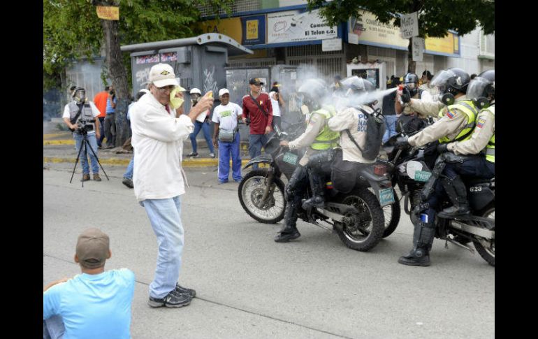 CARACAS, VENEZUELA (01/MAY/2017).- Militares y policías venezolanos impedían este lunes el avance de marchas opositoras hacia el centro de Caracas, dispersando a los manifestantes con gases lacrimógenos, según periodistas en el lugar.Los incidentes se presentaron en El Paraíso (oeste), donde unas 300 personas intentaban franquear un cordón de seguridad para protestar frente a la sede del Consejo Nacional Electoral (CNE), en el centro, y en Santa Mónica (centro-oeste).Miembros de la Guardia Nacional y la Policía lanzaron bombas de gas lacrimógeno, obligando a retroceder al grueso de los manifestantes y evitar que llegaran al centro, donde cientos de chavistas se manifestaban en apoyo al presidente Nicolás Maduro y con motivo del Día del Trabajo.En El Paraíso, un grupo de jóvenes permaneció cerca de la barrera militar, algunos encapuchados lanzando piedras y los artefactos de vuelta."¡Libertad! ¡Libertad!", coreó la multitud tras la reacción de la Guardia Nacional, mientras en los edificios vecinos retumbaban cacerolas.La oposición venezolana cumple este lunes un mes de protestas para exigir elecciones generales, incluyendo un adelanto de las presidenciales previstas en 2018, al culpar a Maduro de la grave crisis política y económica que soporta el país petrolero.Las manifestaciones dejan un saldo de 28 muertos y cientos de heridos, de los cuales se acusan mutuamente el gobierno y sus adversarios.Maduro, elegido hasta enero de 2019, sostiene que las protestas, sumadas a lo que denuncia como una "guerra económica", buscan crear las condiciones para un golpes de Estado y una intervención extranjera en Venezuela.En tanto, un millar de personas se concentraba en el sector acomodado de Altamira (este de Caracas) con la intención de marchar hacia la sede del Tribunal Supremo de Justicia (TSJ), también en el centro, que el oficialismo considera su bastión.Sin embargo, los accesos a ese sector se hallaban bloqueados por las autoridades.Tanto el TSJ como el CNE son acusados por la oposición de servir al gobierno.