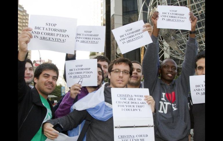 Internacional | Reclaman más seguridad y más libertades para los ciudadanos del país Argentinos protestan contra Cristina Fernández en NY Reclaman más seguridad y más libertades para los ciudadanos del país Por: NTX 25 de septiembre de 2012 - 19:30 hs Residentes argentinos participan en un 'cacerolazo' contra la política económica y social de la presidenta argentina. EFE / NUEVA YORK, ESTADOS UNIDOS (25/SEP/2012).- Un centenar de argentinos se concentró hoy en la neoyorquina plaza de Columbus Circle para protestar contra la política del Gobierno de Cristina Fernández y reclamar "más seguridad" y "más libertades" para los ciudadanos del país. La concentración, convocada a través de las redes sociales frente al hotel donde se aloja la mandataria en su visita a la Gran Manzana para asistir a la 67 Asamblea General de las Naciones Unidas, se suma a la ola de protestas que en los últimos días se está llevando a cabo en Argentina contra la presidenta. Los manifestantes, algunos de ellos con cacerolas y bajo el grito de "Argentina, Argentina", portaban pancartas en las que se podía leer "Cristina corrupta", "Queremos preguntar. Dé una conferencia de prensa", "No queremos otra Venezuela" o "Basta de inseguridad". "Lo que pide la gente en Argentina es seguridad, que la gente pueda salir tranquila y que pueda decidir si quiere ahorrar en dólares o no", aseguró hoy a Efe una de las manifestantes, Norma Tambori. Además, explicó que otra de las grandes preocupaciones de los argentinos en estos momentos es que Fernández siga los pasos del presidente de Venezuela, Hugo Chávez, algo que, en su opinión, "la gente no quiere". "No somos gente de dinero como se empeña en decir Cristina. Somos la clase media trabajadora que está luchando por sus derechos", recalcó Tambori. Por su parte, la argentina Marcela Mercado explicó a Efe que se unió a la protesta para reclamar "un país libre sin Cristina", pues, a su juicio, la gente que apoya a la presidenta "solo es la que no tiene estudios y no tienen aspiraciones en su vida". "Necesitamos que Cristina salga y deje a ese país -Argentina- en libertad, como estábamos antes. Que no haya tantos crímenes ni tantos robos porque la gente está desesperada", añadió. Temas América Latina Manifestaciones en el mundo Argentina Cristina Fernández Lee También Sociales: El Informador inicia una nueva etapa con la moderna imprenta "Doña Stella" “Cada quien que responda por sus…” Colocan a mexicana entre las favoritas para el Nobel de Literatura 2025 Dónde ver EN VIVO el Argentina vs Nigeria por el Mundial Sub-20 Recibe las últimas noticias en tu e-mail Todo lo que necesitas saber para comenzar tu día Registrarse implica aceptar los Términos y Condiciones