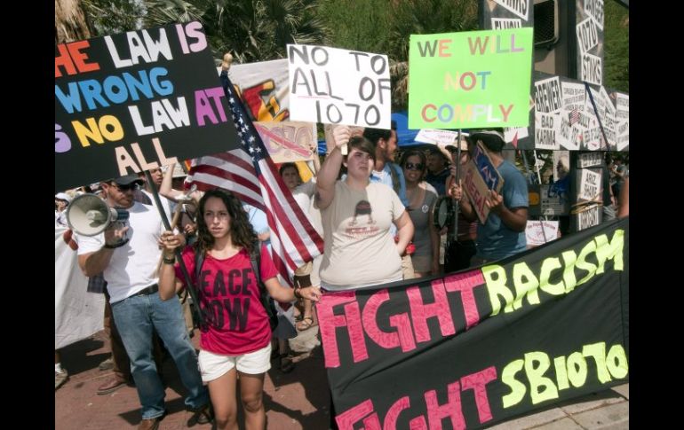 Internacional | El estado también pide una consideración expedita para su apelación Arizona apela fallo de bloqueo a ley de inmigración Solicitan que se levante un mandato judicial preliminar que prohíbe partes de la legislación que hoy entró en vigor Por: REUTERS 29 de julio de 2010 - 14:42 hs Jóvenes protestan este jueves contra de la ley SB1070, en las afueras de un edificio estatal en Tucson, Arizona. EFE / PHOENIX, ESTADOS UNIDOS (29/JUL/2010).- Arizona presentó este jueves una apelación para revocar el fallo de una jueza estadounidense que bloqueó partes clave de una ley del estado contra la inmigración ilegal, conocida como SB 1070 y que entró hoy en vigor, dijo el portavoz de la gobernadora. Abogados de la gobernadora Jan Brewer y de Arizona solicitaron a la Corte de Apelaciones del Noveno Circuito en San Francisco que revoque un mandato judicial preliminar que prohíbe partes de la ley, además de una consideración expedita para la apelación del estado, dijo el portavoz Paul Senseman. La jueza de distrito Susan Bolton bloqueó el miércoles los elementos más controversiales de la ley que criminaliza la inmigración ilegal. "Hoy presenté una apelación expedita al Noveno Circuito pidiendo a la corte que levante el bloqueo interpuesto por la jueza Bolton ayer contra ciertas previsiones de SB 1070 y para permitir que esas previsiones entren en efecto a la espera de una decisión sobre los méritos de este caso", dijo Brewer en un comunicado. "También he pedido al Noveno Circuito que acelere el proceso de los informes y su dictamen, ya que el Congreso y el presidente una vez más no actuaron", añadió. La legislatura de Arizona, controlada por republicanos, aprobó la ley en abril para intentar que alrededor de un millón de inmigrantes ilegales abandonen el estado y detener el tráfico de personas y drogas a lo largo de la frontera con México. Las tensiones sobre la ley han encendido el debate nacional sobre la inmigración y promete ser un tema importante en las elecciones de noviembre, en las que los demócratas del presidente Barack Obama lucharán por retener el control del Congreso. Hay alrededor de 10.8 millones de inmigrantes ilegales en Estados Unidos, un país de más de 300 millones de habitantes. Temas Norte América Arizona Ley antiinmigrantes Estados Unidos Recibe las últimas noticias en tu e-mail Todo lo que necesitas saber para comenzar tu día Registrarse implica aceptar los Términos y Condiciones