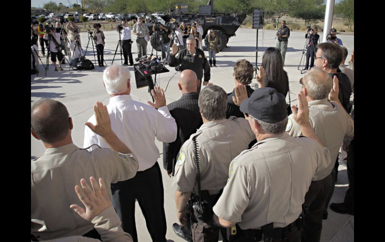 Internacional | El grupo de voluntarios apoyará en la búsqueda de vehículos con extranjeros ilegales Arizona recluta pelotón contra inmigrantes El grupo de voluntarios comandados por el sheriff Joe Arpaio trabajará con agentes en la búsqueda de vehículos con extranjeros ilegales Por: NTX 17 de noviembre de 2010 - 18:13 hs El sheriff Arpaio toma juramento a los integrantes del grupo, cuya misión es detener indocumentados. AP / PHOENIX, ESTADOS UNIDOS (17/NOV/2010).- El sheriff antiinmigrante del condado de Maricopa, Joe Arpaio, anunció hoy la formación de un Pelotón de Operaciones contra la Inmigración Ilegal, integrado por voluntarios armados, entre ellos los actores Steven Seagal y Lou Ferrigno. "Se está recortando el presupuesto de las corporaciones (policiales) y las agencias están perdiendo personal, y la batalla para detener la inmigración ilegal debe continuar", dijo Arpaio al anunciar la creación del pelotón en Phoenix, Arizona. "Arizona es el puerto de entrada para el contrabando de personas desde México, Centro y Sudamérica, de forma que tiene sentido pedir la ayuda del público para esta empresa", explicó el sheriff al tomar juramento a los integrantes del grupo. El Pelotón de Operaciones contra la Inmigración Ilegal estará integrado por 56 voluntarios, entre ellos médicos, abogados, pilotos, soldados y bomberos. Entre sus integrantes destacan celebridades cinematográficas como Steven Seagal, Lou Ferrigno (El Increíble Hulk) y Peter Lupus (Misión Imposible), los dos primeros de los cuales ya eran agentes del sheriff. Seagal, quien ahora vive en Phoenix, prestó juramento como agente del sheriff en Nueva Orleans, Louisiana, y Ferrigno trabaja como agente en el Departamento del Sheriff del condado de Los Angeles. "Estas personas están ocupadas con sus carreras de actores por lo que no espero verlos aquí en la labor muy frecuente", dijo Arpaio, conocido por las acciones antiinmigrantes que ha implementado en el condado de Maricopa. "Pero ellos pueden ser importantes para incrementar la concientización del público sobre el asunto de inmigración y promover a otros a unirse al pelotón para reducir el flujo de inmigrantes hacia nuestras comunidades", explicó. Señaló que los integrantes del pelotón recibieron ya varias horas de entrenamiento sobre las leyes de inmigración. De los 56 integrantes, 33 están autorizados a portar armas. Todos ellos trabajarán con agentes del sheriff en búsqueda de vehículos cargados de inmigrantes y de casas utilizadas para albergarlos, y participarán en el control de multitudes durante las manifestaciones contra las políticas de inmigración. Arpaio destacó que aunque su oficina ha hecho "un extraordinario trabajo" en los últimos tres años, investigando y deteniendo a más de 42 mil indocumentados, el batallón de voluntarios reforzará el combate en los asuntos más complejos y volátiles de la entidad. "Mi meta con la creación de este nuevo pelotón es el detener y encarcelar tantos indocumentados como los que ingresan al país y detener a aquellos que ya viven y trabajan aquí en forma ilegal", dijo Arpaio. Temas Norte América Arizona Estados Unidos Inmigrantes Recibe las últimas noticias en tu e-mail Todo lo que necesitas saber para comenzar tu día Registrarse implica aceptar los Términos y Condiciones