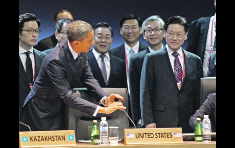 Internacional | Participantes buscan crear conciencia acerca del uso de armas atómicas Arranca Cumbre con advertencias a Corea del Norte e Irán El evento reúne a más de 50 líderes mundiales que discutirán acerca del terrorismo nuclear Por: EFE 27 de marzo de 2012 - 02:45 hs El presidente de Estados Unidos (i), Barack Obama, toma asiento junto al mandatario de Corea del Sur, Lee Myung-bak (d). AP / SEÚL, COREA DEL SUR (27/MAR/2012).- La II Cumbre de Seguridad Nuclear comenzó ayer en Seúl con la presencia de más de 50 líderes, mensajes de advertencia a Corea del Norte e Irán en las reuniones bilaterales previas y la propuesta de Estados Unidos a Rusia de nuevas reducciones de armas atómicas. Los jefes de Estado y de Gobierno iniciaron con una cena de trabajo la reunión, que busca trasladar a acciones concretas la voluntad política contra el terrorismo nuclear expresada en la anterior cumbre de Seguridad Nuclear, celebrada en Washington en 2010. Durante este primer encuentro de la cumbre, que finaliza hoy, los líderes analizaron en un ambiente “serio y sincero” los progresos efectuados en los dos últimos años y remarcaron la necesidad de crear una conciencia de la amenaza que supone el terrorismo nuclear. Pero las principales discusiones se dejarán para las sesiones plenarias de hoy, que abordarán vías para asegurar materiales de alto riesgo, prevenir su tráfico ilícito, proteger las instalaciones atómicas y asegurar el manejo de productos radiactivos que podrían utilizarse en “bombas sucias”. En la sesión participarán los 53 países invitados, junto con la ONU, la Unión Europea, el Organismo Internacional de Energía Atómica (OIEA) y la Interpol. Entre los líderes que están en Seúl destacan el presidente estadounidense, Barack Obama y el chino, Hu Jintao, quienes ayer mantuvieron una reunión bilateral en la que abordaron el programa nuclear norcoreano, una de las cuestiones que, sin estar en la agenda oficial, planea sobre la cumbre de Seúl. PARA SABERDesconfían de Piongyang El régimen comunista norcoreano anunció el pasado 16 de marzo su plan de lanzar un satélite en abril próximo, lo que es contemplado por muchos países, como una prueba encubierta para desarrollar misiles de largo alcance con capacidad nuclear. Temas Asia Terrorismo Corea del Sur Lee También México hará ajustes a los aranceles a países asiáticos "Raymond" baja su potencia, pero tocará tierra en horas Mundial Sub-20: EU golea a Italia y enfrentará a Marruecos Estados donde hay suspensión de clases este 8 de octubre por lluvias Recibe las últimas noticias en tu e-mail Todo lo que necesitas saber para comenzar tu día Registrarse implica aceptar los Términos y Condiciones