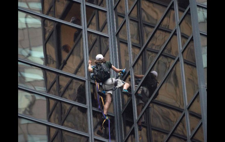 NUEVA YORK, ESTADOS UNIDOS (10/AGO/2016).- El hombre que escalaba con ventosas este miércoles la torre Trump en Nueva York fue detenido por la policía, luego de tres horas de captar la atención con su riesgosa hazaña y provocar la movilización de la fuerza pública.Imágenes de televisión mostraron a policías arrastrando al hombre hacia una zona segura a través de una ventana abierta en el piso 21, de los 68 que tiene el edificio, cuartel general del candidato republicano Donald Trump en Manhattan."El escalador fue puesto bajo custodia", escribió en Twitter un vocero de la policía.El joven, vestido con pantalones cortos, una camiseta y portando una mochila, escaló lentamente durante tres horas con la ayuda de ventosas por la fachada de la torre, en la famosa 5ª avenida y a ojos de los policías, que en ese momento no podían intervenir.Imágenes de la televisión, un video y fotografías fueron subidas a Twitter.Antes de capturarlo, las fuerzas del orden perforaron una ventana para hablar con el escalador e intentar sacarlo del lugar, pero no tuvieron éxito.Luego hicieron descender una plataforma para limpia vidrios a la altura del sujeto y retiraron un gran panel de vidrio varios pisos arriba del hombre, cuyos motivos para escalar el rascacielos aún se desconocían.Donald Trump vive en el edificio, que también es la sede central de su organización empresarial.El candidato republicano a la Casa Blanca se encontraba el miércoles fuera de la ciudad, encabezando una reunión de campaña en Carolina del Norte (sureste de Estados Unidos).