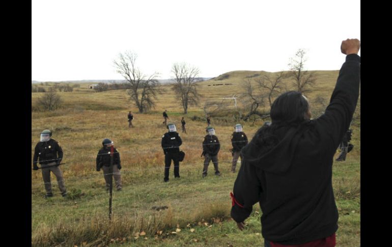 DAKOTA DEL NORTE, ESTADOS UNIDOS (27/OCT/2016).- Agentes de policía en uniforme antimotines dispararon munición no letal y aerosol pimienta el jueves en su intento por despejar a los manifestantes que acampaban en propiedad privada para bloquear la construcción del oleoducto Dakota Access.La portavoz del Servicio de Emergencias de Dakota del Norte, Cecily Fong, indicó que los oficiales respondieron a las tácticas "agresivas" de los manifestantes, como arrojar rocas a los oficiales y amenazarlos.Un manifestante se dolía de una pierna después de lo que un reportero de The Associated Press describió como un fuerte estallido. Un manifestante con una mochila médica atendió la pierna del hombre, a quien poco después se le vio de pie y caminando. Fong dijo no estar al tanto de ningún herido de gravedad, ni agentes ni manifestantes.Más de 20 manifestantes fueron arrestados, de acuerdo con Fong. Varios fueron subidos a camionetas, entre ellos al menos uno esposado.Los manifestantes llegaron durante el fin de semana para establecer un campamento en una propiedad privada en la que se está construyendo parte de un oleoducto de 1.200 millas (casi 2.000 kilómetros) para llevar petróleo del oeste de Dakota del Norte a Illinois, y de allí enviarlo a refinerías. La ruta del oleoducto bordea la reserva Standing Rock y la tribu sioux dice que podría poner en peligro el abastecimiento de agua y alterar sitios culturales. El estado de Dakota del Norte dice que no han hallado ningún lugar cultural delicado en el área.Los agentes del orden y soldados en camionetas, vehículos militares y autobuses iniciaron la operación para despejar el campamento alrededor del mediodía y realizaron una formación tipo herradura una vez que llegaron al campamento, donde unos 200 manifestantes los esperaban, algunos desafiantes y otros rezando.Los oficiales usaron un altavoz para advertir a los manifestantes que se retiraran. Dos helicópteros y una avioneta sobrevolaron el área para monitorear el desarrollo.El operativo para sacar a los protestantes comenzó un día después de que se rehusaran a dejar el lugar de forma voluntaria.El campamento se encuentra justo al norte de otro campamento permanente más grande en terrenos del gobierno federal y que ha sido el área principal de encuentro para cientos de manifestantes, entre ellos indígenas norteamericanos provenientes de todo el país, defensores del medio ambiente y algunas celebridades.El jefe policial del condado Morton, Kyle Kirchmeier, dijo en un comunicado que las acciones de los manifestantes "obligaron a las autoridades a responder"."Insisto, éste es un asunto de seguridad pública", subrayó. "No podemos permitir que los manifestantes bloqueen caminos del condado, bloqueen carreteras estatales ni ingresen a propiedad privada".Fong dijo que una vez que el campamento haya sido despejado, las autoridades regresarán las tierras a la constructora Energy Transfer Partners, que será responsable de asegurar el lugar a partir de entonces.Pero Robert Eder, un veterano de la guerra de Vietnam de 64 años y perteneciente a la Reserva Standing Rock, señaló que los manifestantes volverán."Si encarcelan a alguien, habrá el doble mañana, y por cada día que pase más vendrán", aseguró.